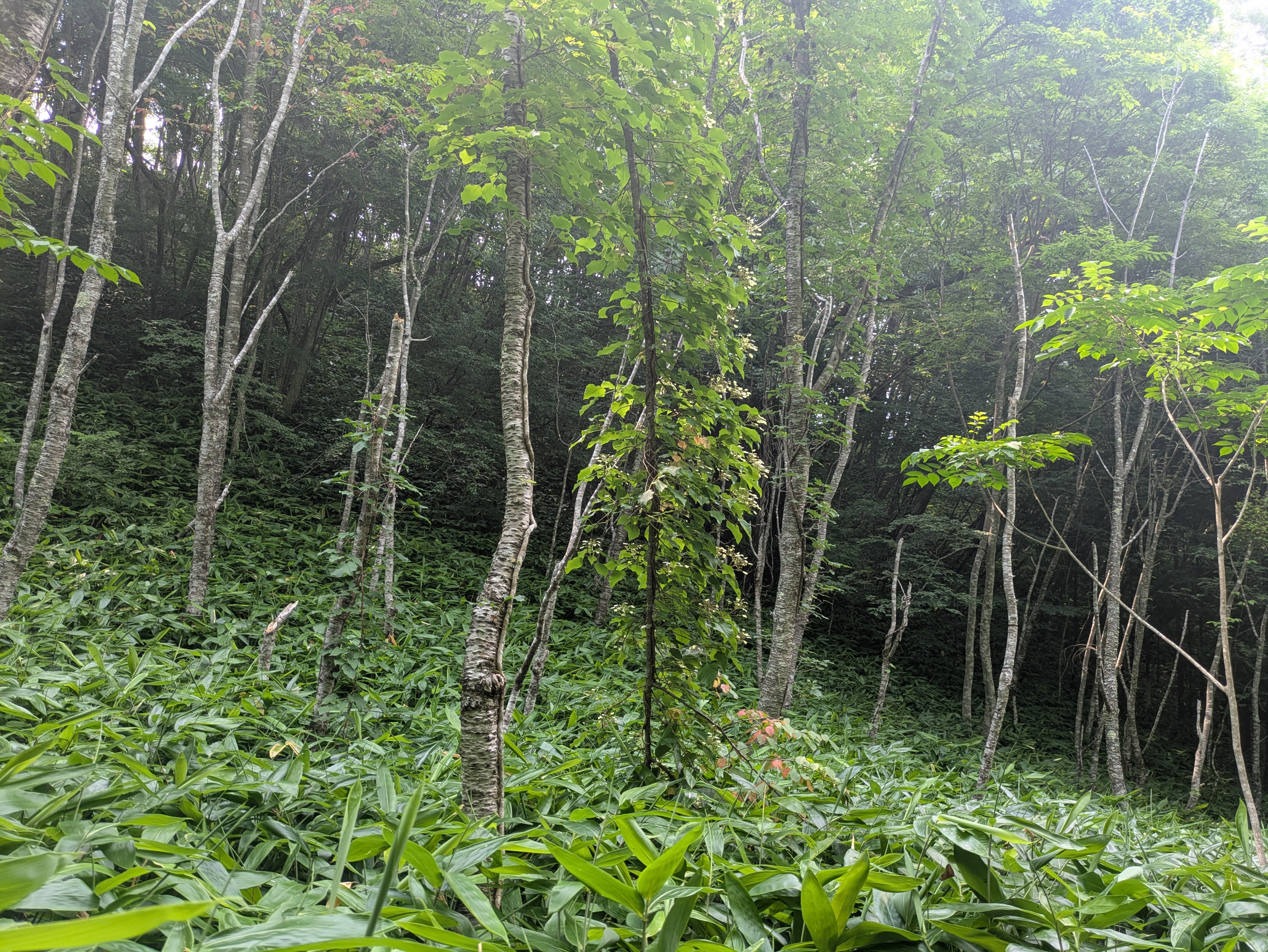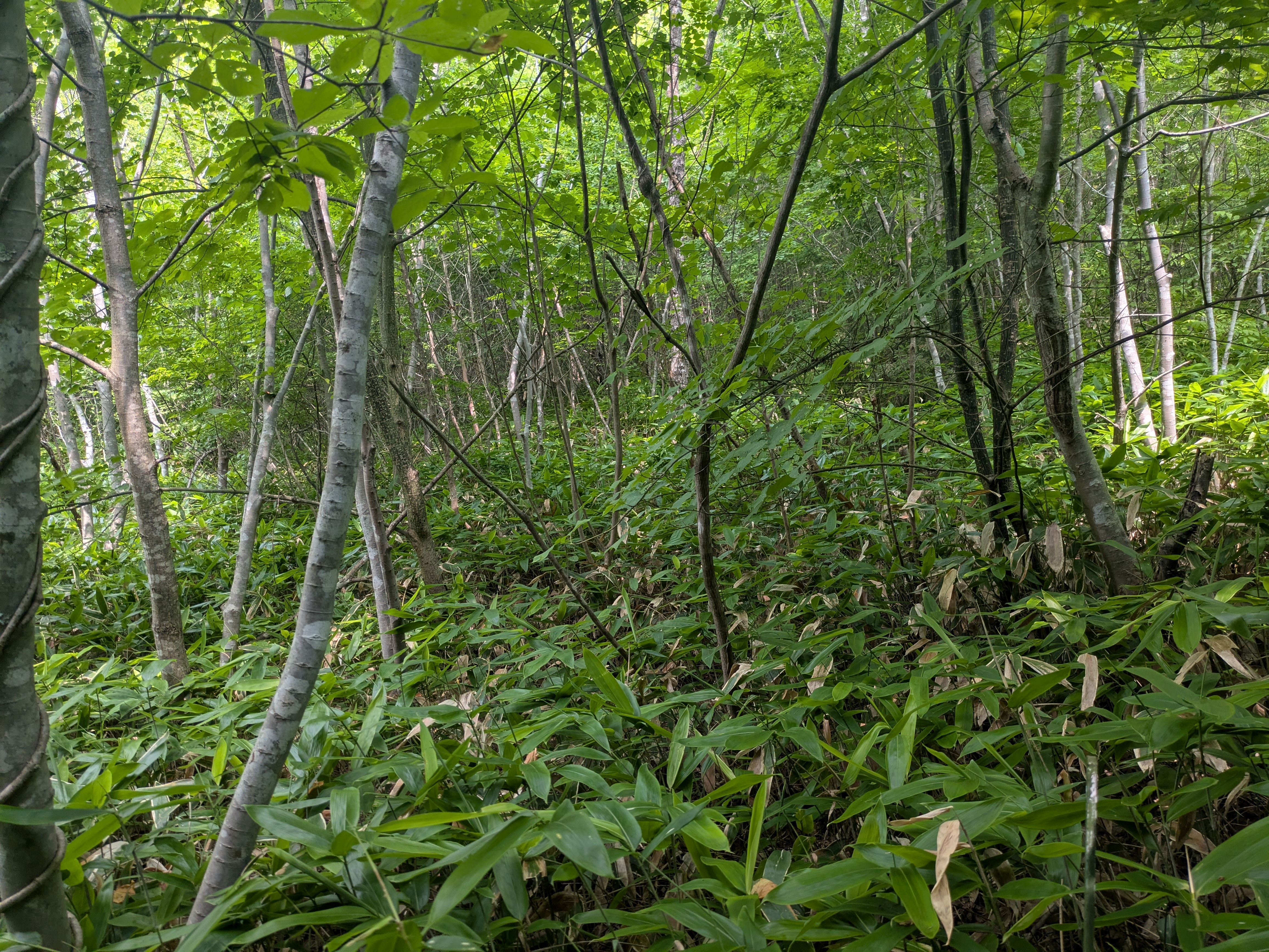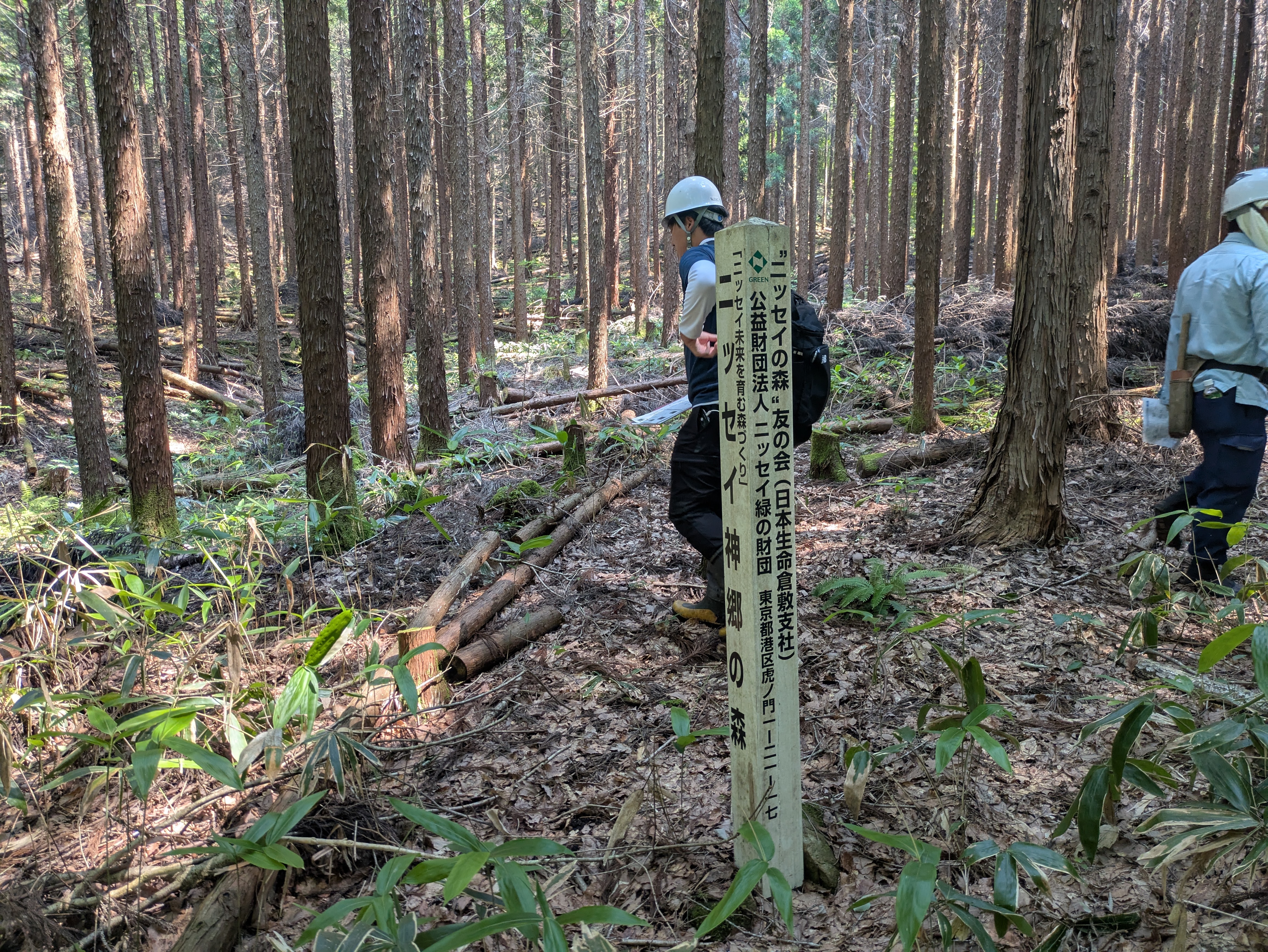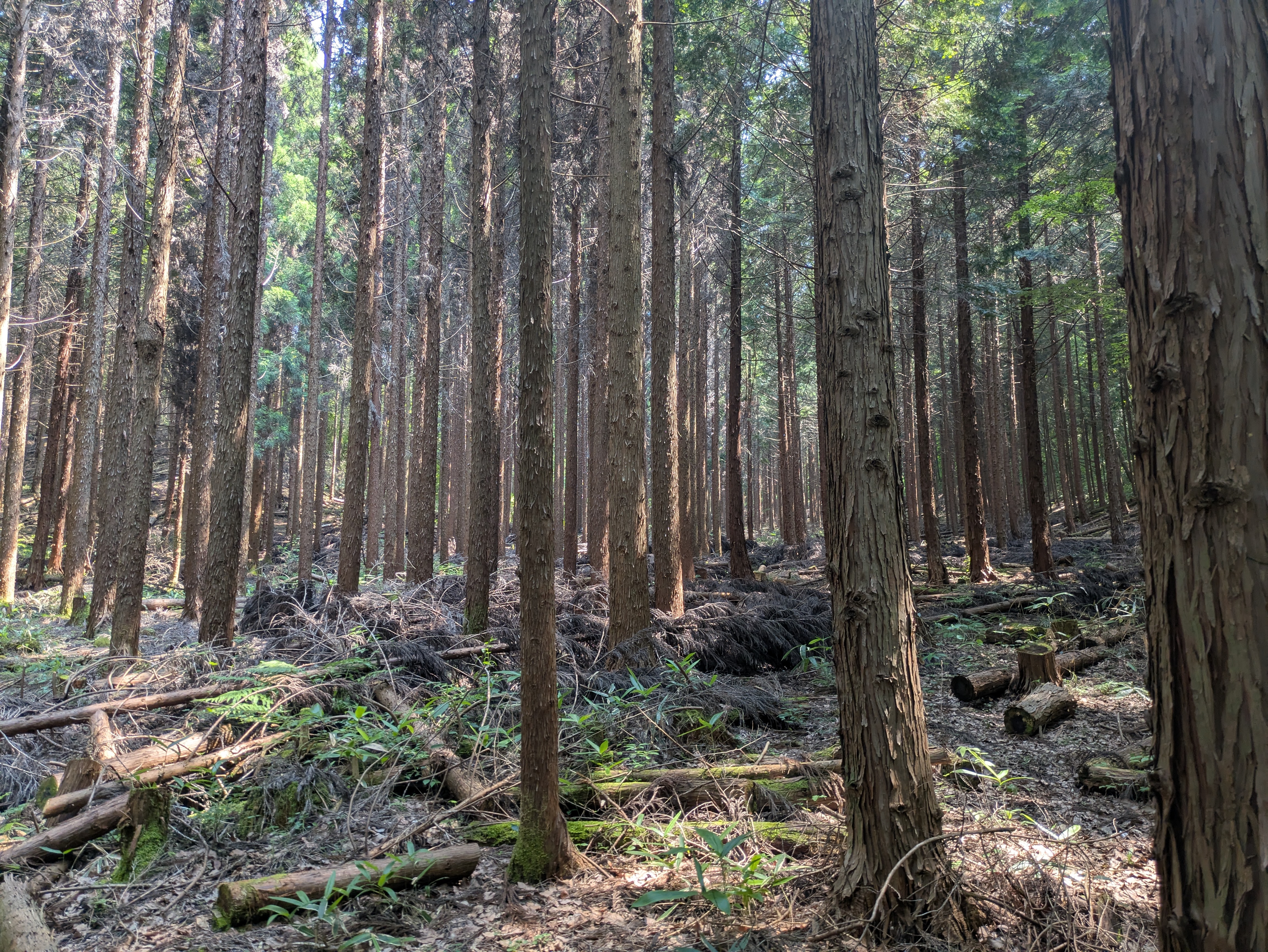 備考 | 【2025現地調査】 ・沢沿いにスギ、続く平坦地となだらかな斜面にヒノキを植樹(2022年に間伐実施済み) ・奥の造林地にあるケヤキとヤマザクラともに残存は良好。 |