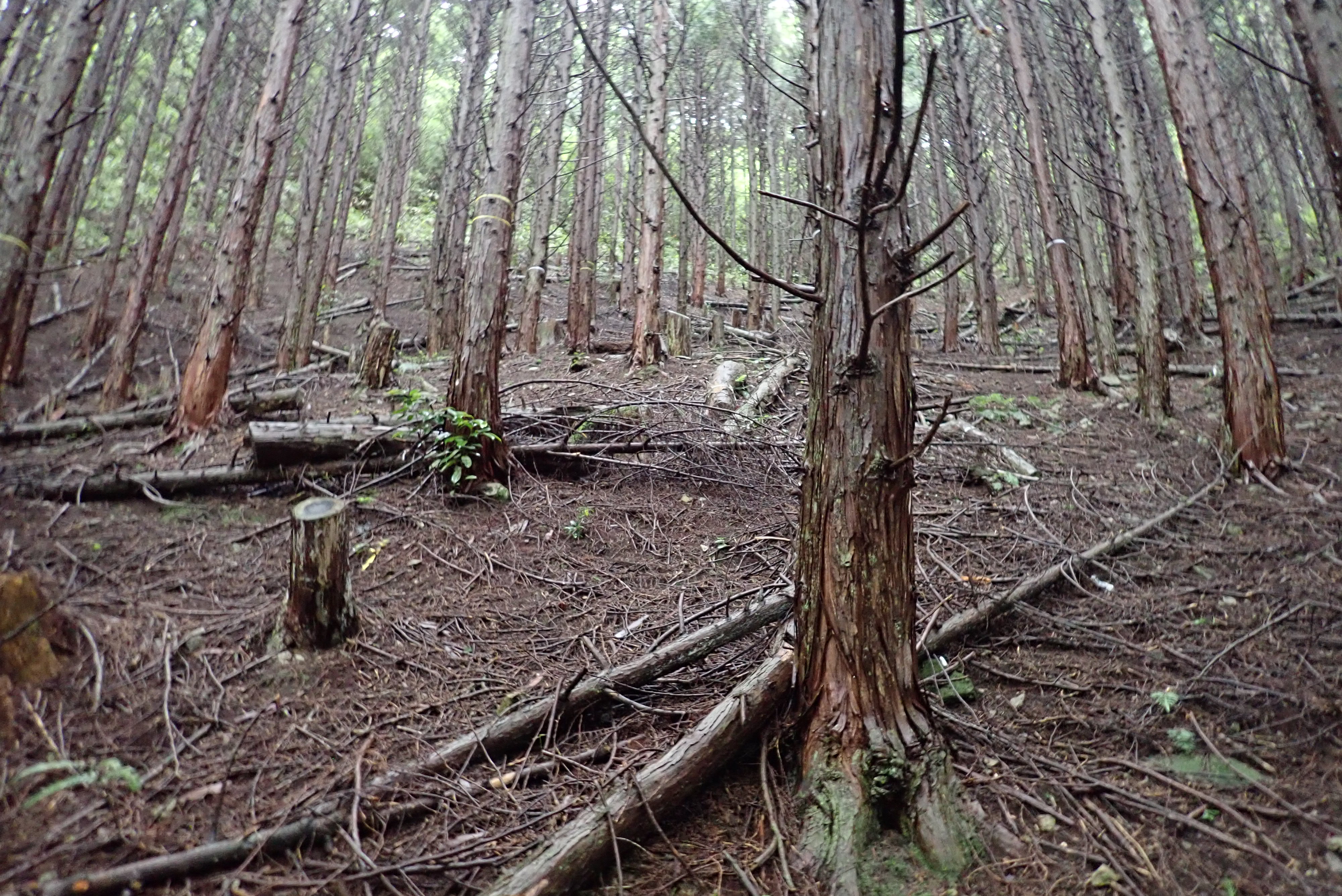 【2023現地調査】 ・植栽木は残存本数が多く、間伐要否は今後3年サイクルの踏査の中で判断 |