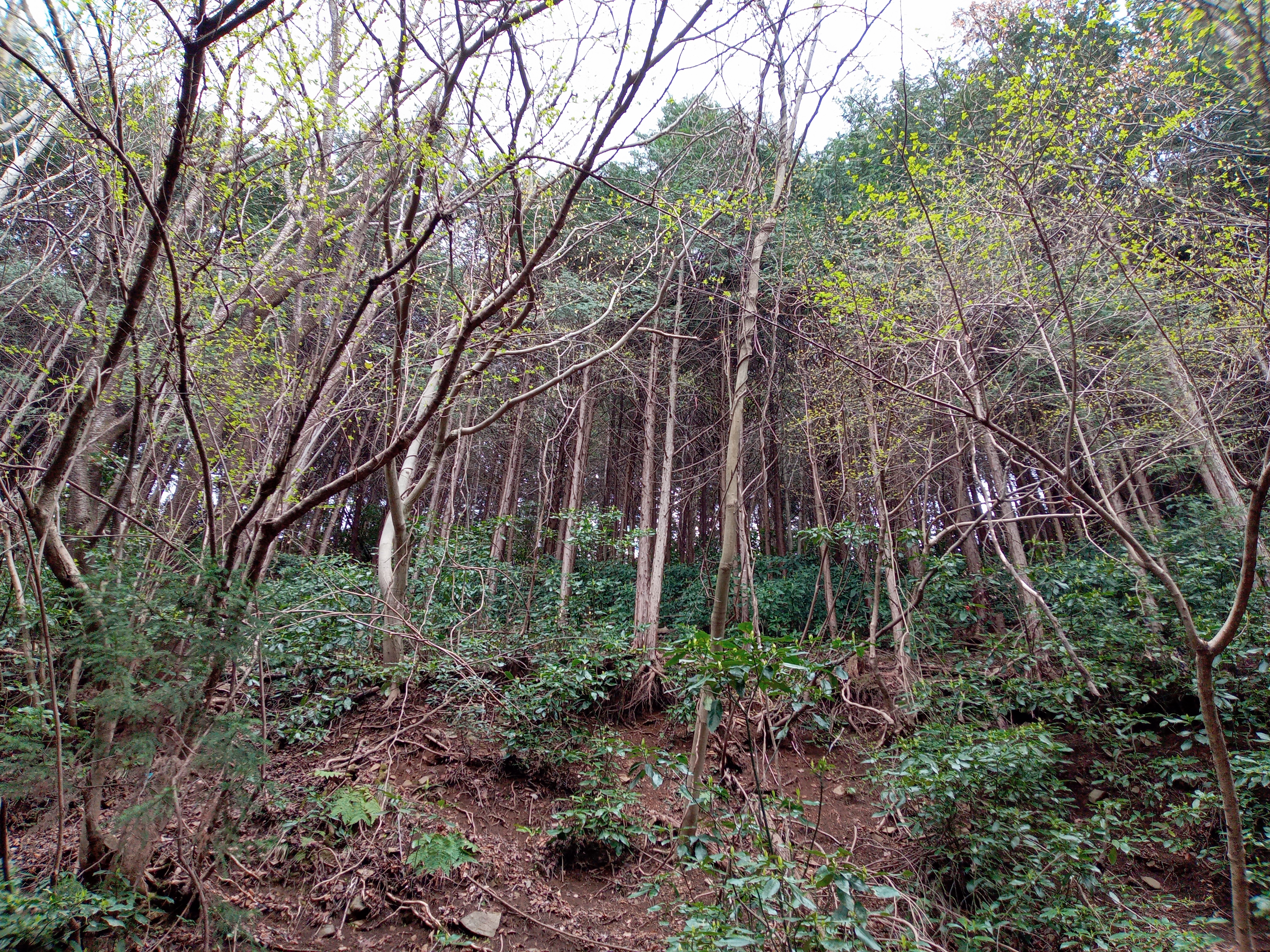 アクセス | 高尾駅北口から20分で林道ゲードに到着。駅北口から甲州街道を渡り昭和天皇御陵の横を通り、陣場街道に向かって左折、更に左折して陣場街道を西に登り恩方一小を過ぎて松竹橋を左折し暫く走ると林道ゲート。そこから林道を15分走って八王子の森に到着。直前の林道からは新宿副都心の高層ビルが展望できる。森の入口には大きな樅の木が屹立し目印になっている。 | |