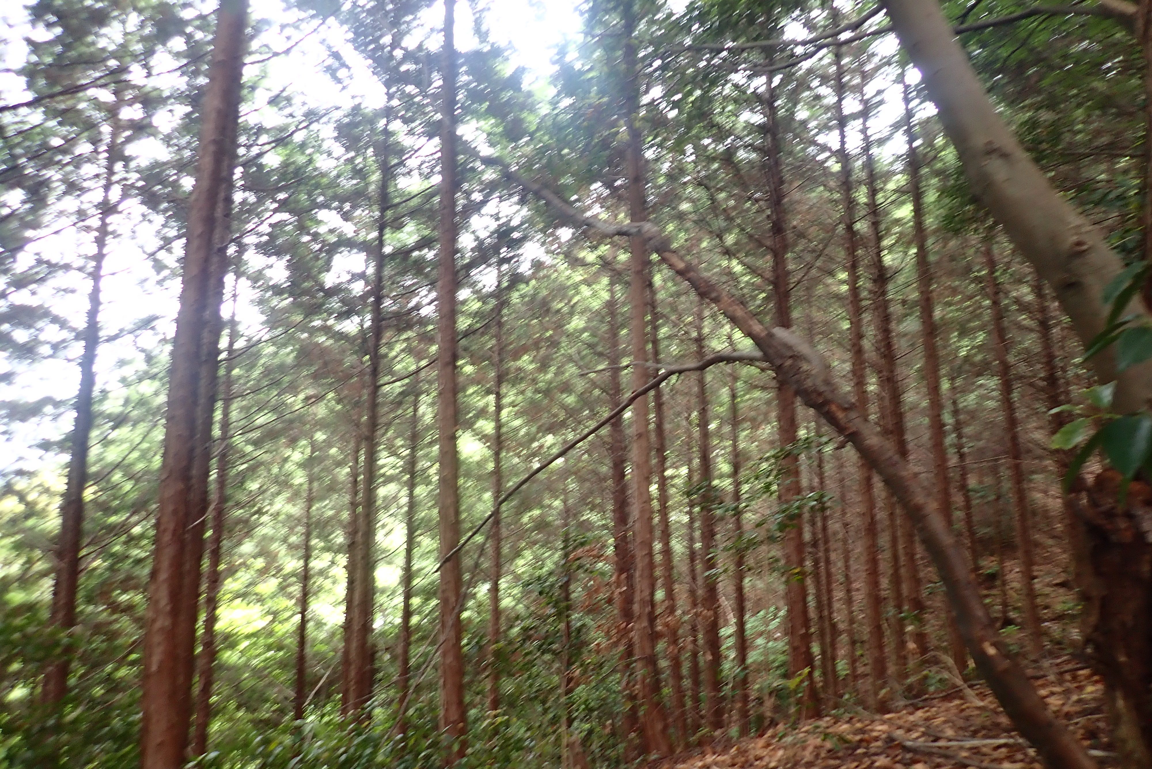 | 備考 | 【2022現地調査】 ・植栽したヒノキが順調に成育している森。また、林道脇に植栽したヤマザクラも大きいものでは胸高直径が約30センチ程にまで成育 ・下層植物は多くないが、ヒイラギ、クロガネモチ、アセビなどが一部で見られた |