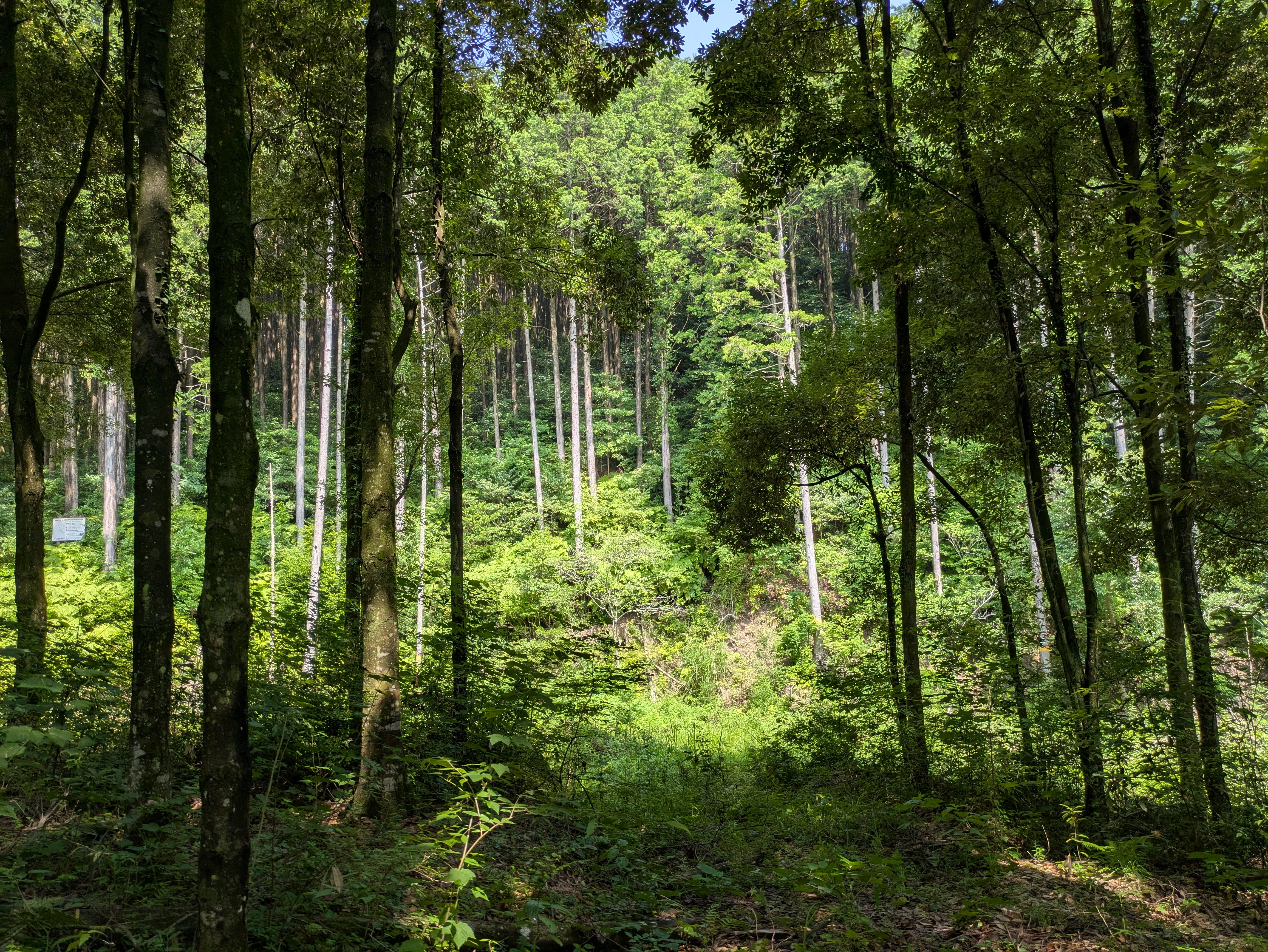 備考 | <2025年現地調査> ・イチイガシ、ケヤキほか6種類の広葉樹からなる斜面が少ない平坦な森。 ・イチイガシは北向き斜面などではやや細い立木はあるが、適度な密度の一斉林になっている。 ・ヤマグリは下枝のない通直な幹で樹高15m前後に育っている。 |