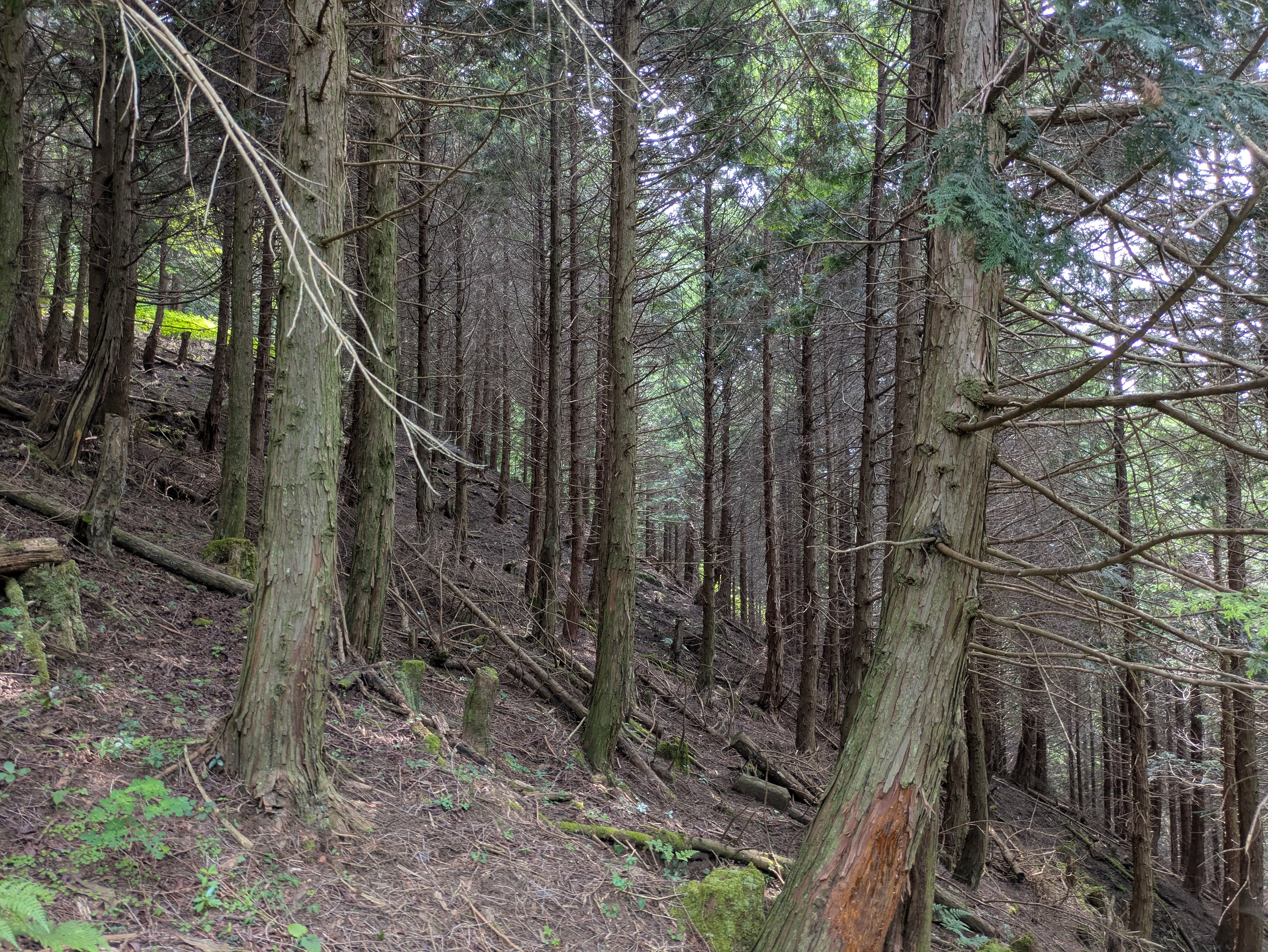 備考 | <2025年現地調査> ・スギとヒノキのほか、ヤマザクラ、ケヤキなど5種類の広葉樹を植栽し、順調に成育している森 ・H29北九州豪雨よってスギ区域の急斜面部分が一部被害をうけた モミジとカツラはほとんど残存していないが、ウリハダカエデほかが自然発生し大きなギャップはないトドマツの一斉林で順調に成長。H27に間伐を実施 |