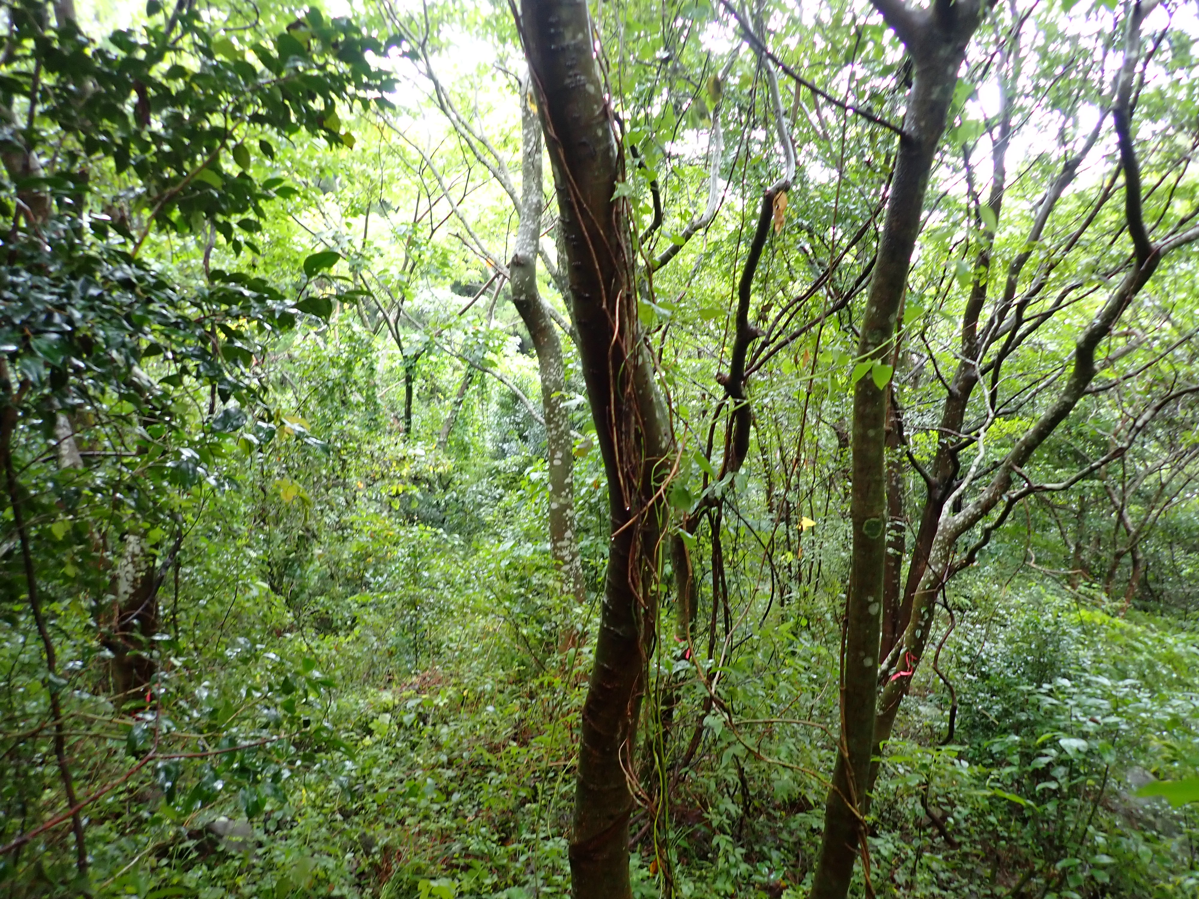 | 備考 | ・森のほぼ真ん中を流れる沢の両岸に拡がる森 ・ケヤキは細いが残存率は高い。また、キハダやアカガシ、ヤマザクラの残存木は10センチ前後になっているものも多い ・2年前に除伐を実施しツルや雑木が整理されたため、植栽木が目立つようになっており、今後の成長が期待される状況 |