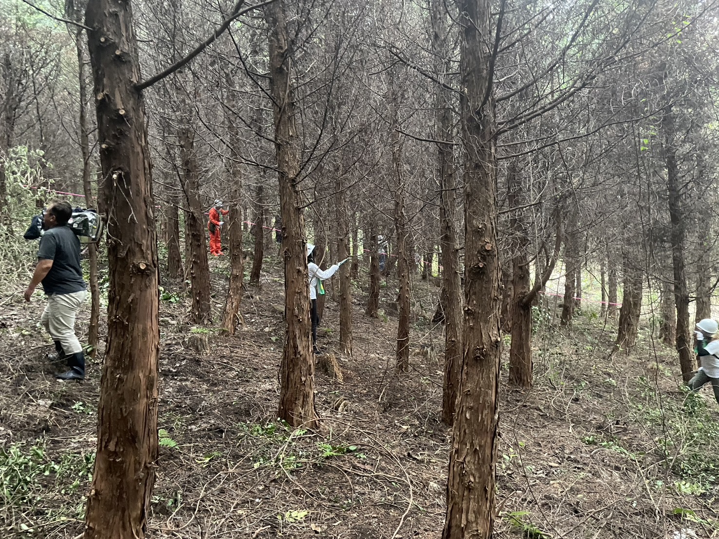 備考 | ・ヒノキは尾根部分から奥に向かって植栽され、順調に成育。 ・クヌギはシカ害等により残存率が低く、代わりにヒサカキ等が繁茂。 |