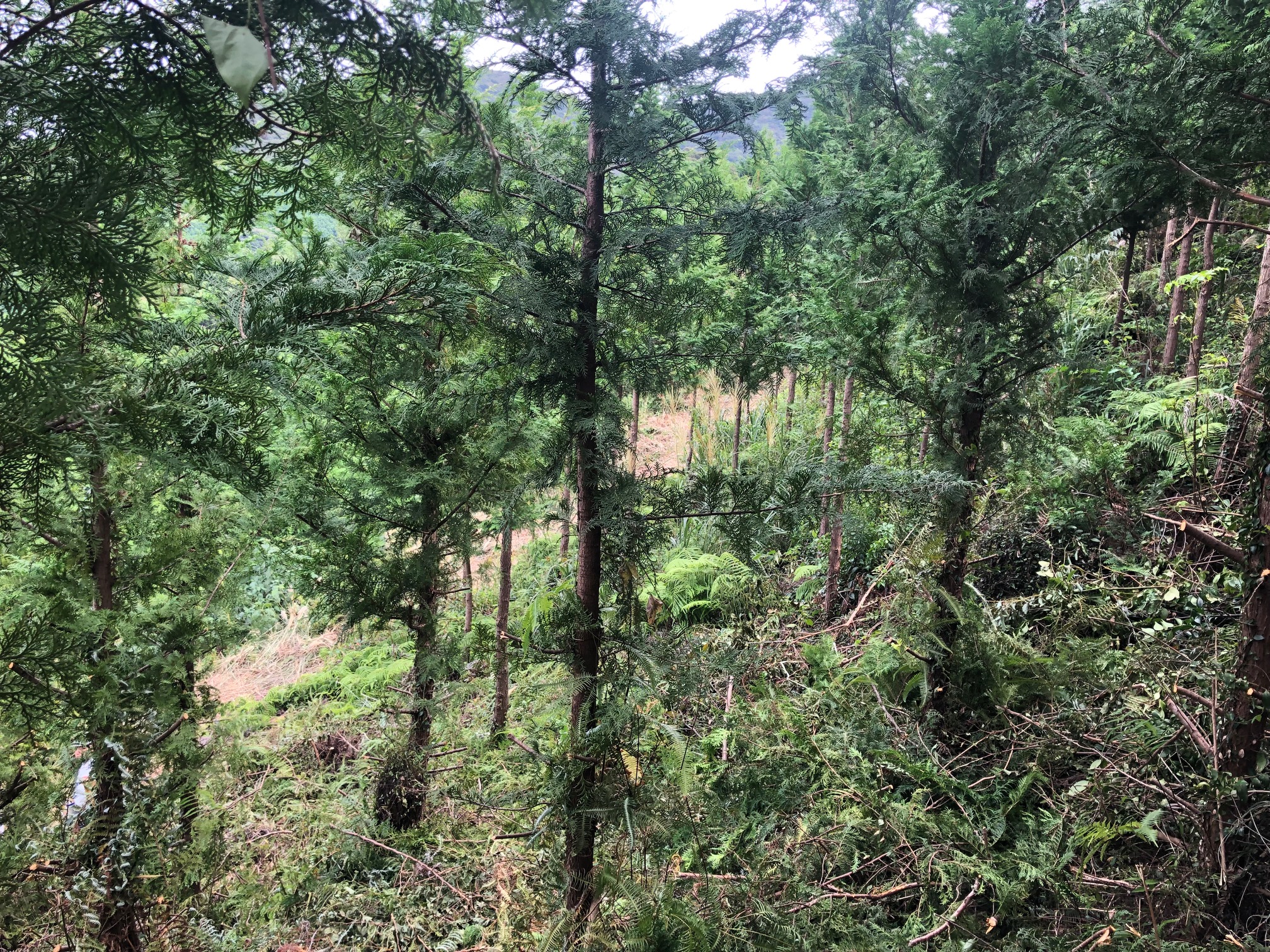 備考 | ・ヒノキの普通苗(北側)とポット苗(南側)を植栽し順調に成育している森 ・2016踏査時には林内の集材路跡は裸地だったが、現在はヌルデ、ヒサカキ等が自然発生してきている |