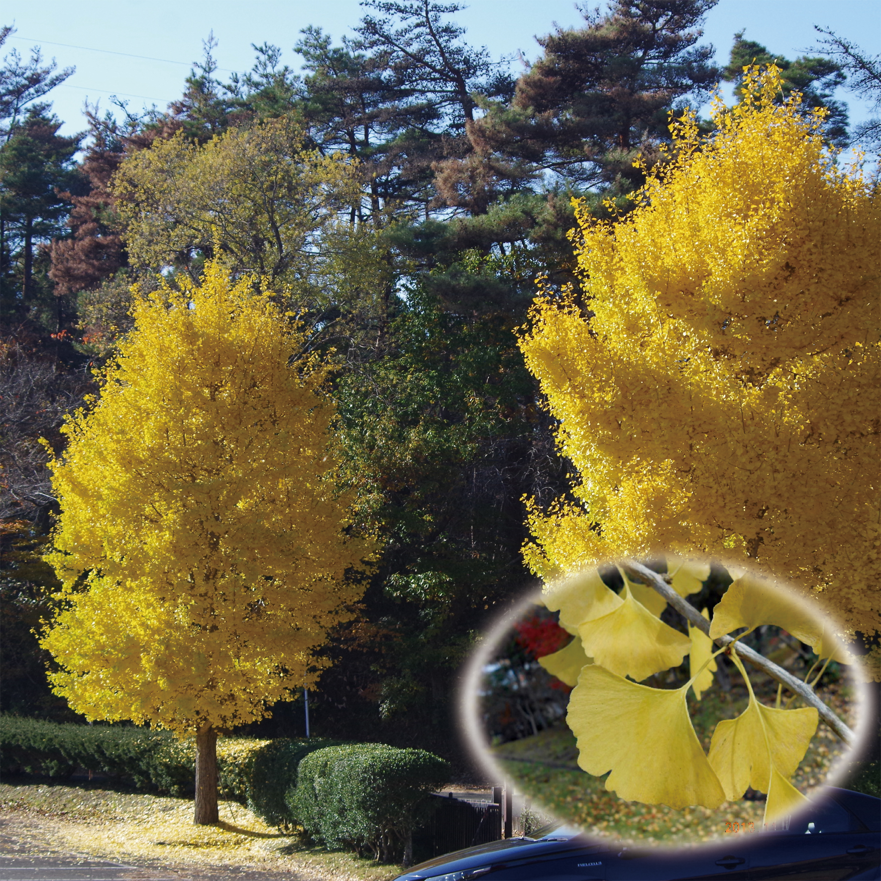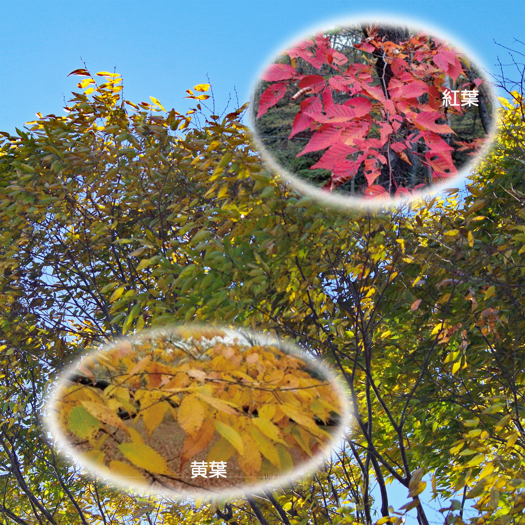 県民の森の紅葉は、記念館前のモミジが真っ赤になるとともに、サツキ園を守るように並ぶケヤキ並木、駐車場入り口のイチョウが黄葉します。イチョウの木が鮮やかな黄色になると、アスレチック付近のモミジ山のイロハモミジやオオモミジのトンネルが見頃になります。やがて、「水辺の道」「モミジの道」「こもれびの道」といった遊歩道に流れるように紅葉があふれるのです。