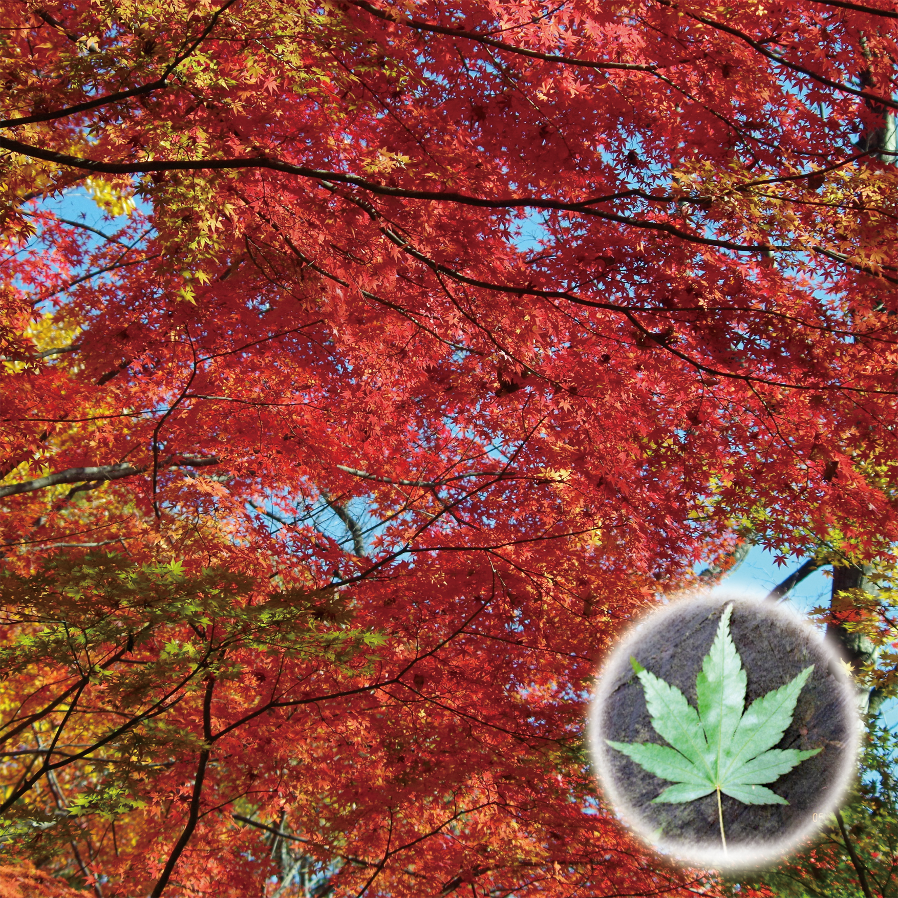 カエデは葉が「カエルの手」に似ていることから名付けられました。変異が多く、見分けるのはとても難しいのです。「カエデとモミジの違いはなんですか?」と聞かれますが、モミジはカエデの仲間です。葉の切れ込みが深く、紅葉の美しいものを「もみず(秋に草木が赤や黄色に変わること)」と呼び、転じて「モミジ」となりました。モミジと名がつくものは「オオモミジ」「イロハモミジ」「ヤマモミジ」の3種類です。