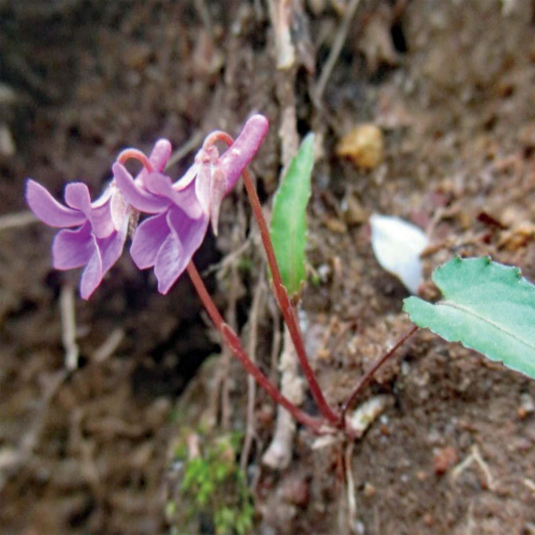 牧野富太郎氏の貢献をたたえ、その名にちなんでの命名。兵庫県~青森県に分布。早春に地面から直接茎をのばし、濃い赤紫の小さな花を咲かせます。