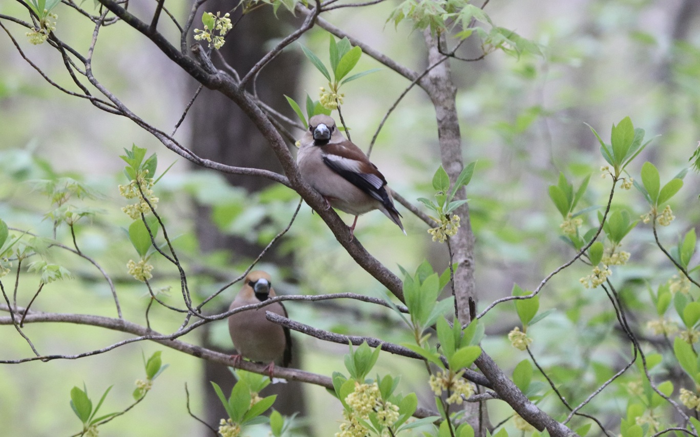 宮城県蔵王野鳥の森自然観察センター「ことりはうす」の周辺にも冬になるとやってくるアトリ科の「シメ」。こわもての顔からは想像できないキュートな一面もご紹介。