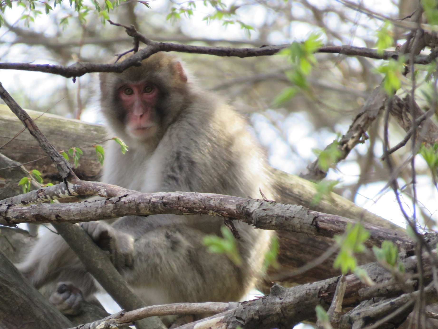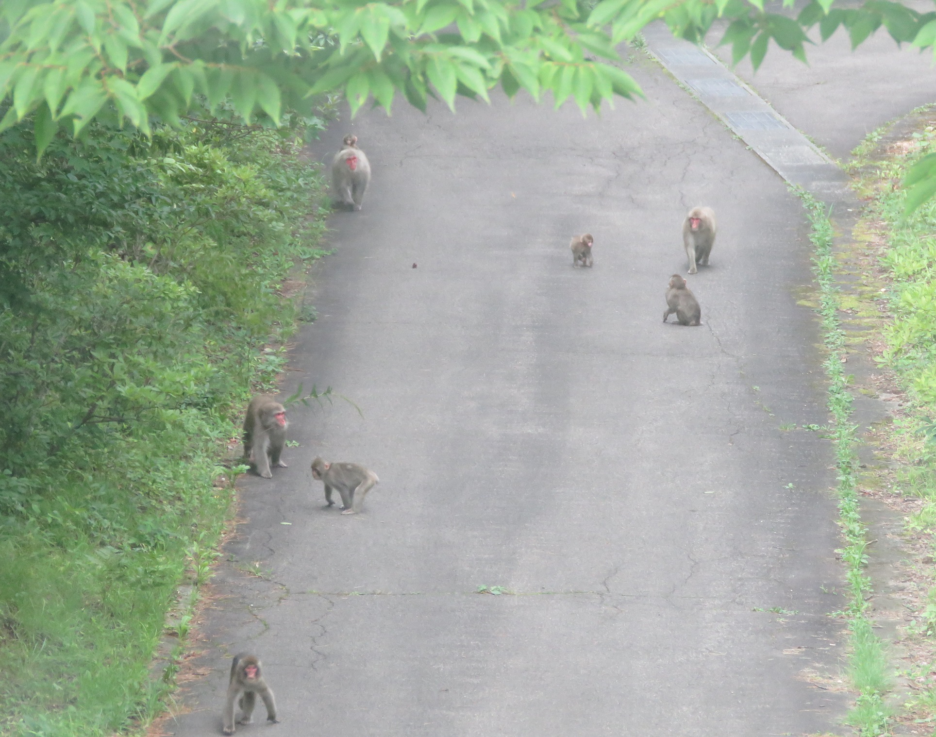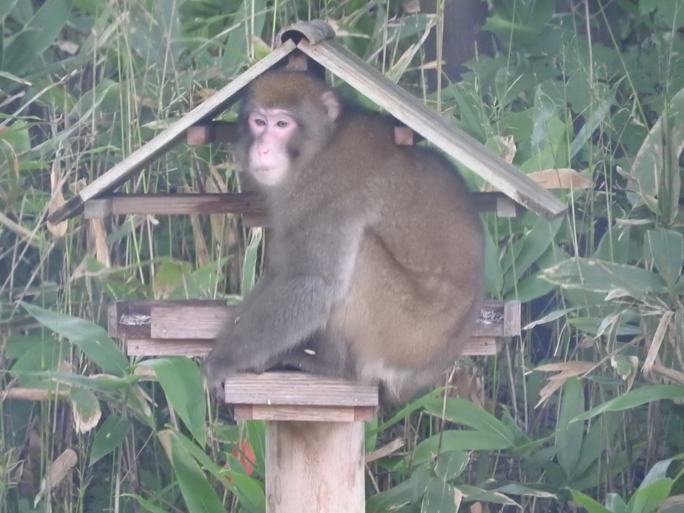 「ことりはうす」がある蔵王町では昔、ニホンザルはほとんど見られなかったと聞いています。ここ数年、蔵王町でも頻繁に目撃されるようになってきました。つまり人の住むエリアにも進出しているということです。もともと近隣の町に複数の群れがあったことから、最近その中の群れの一部が蔵王町に、そして「ことりはうす」周辺に現れるようになったようです。野鳥の森に来た猿たちは森の豊かな恵みを得ているようですよ。