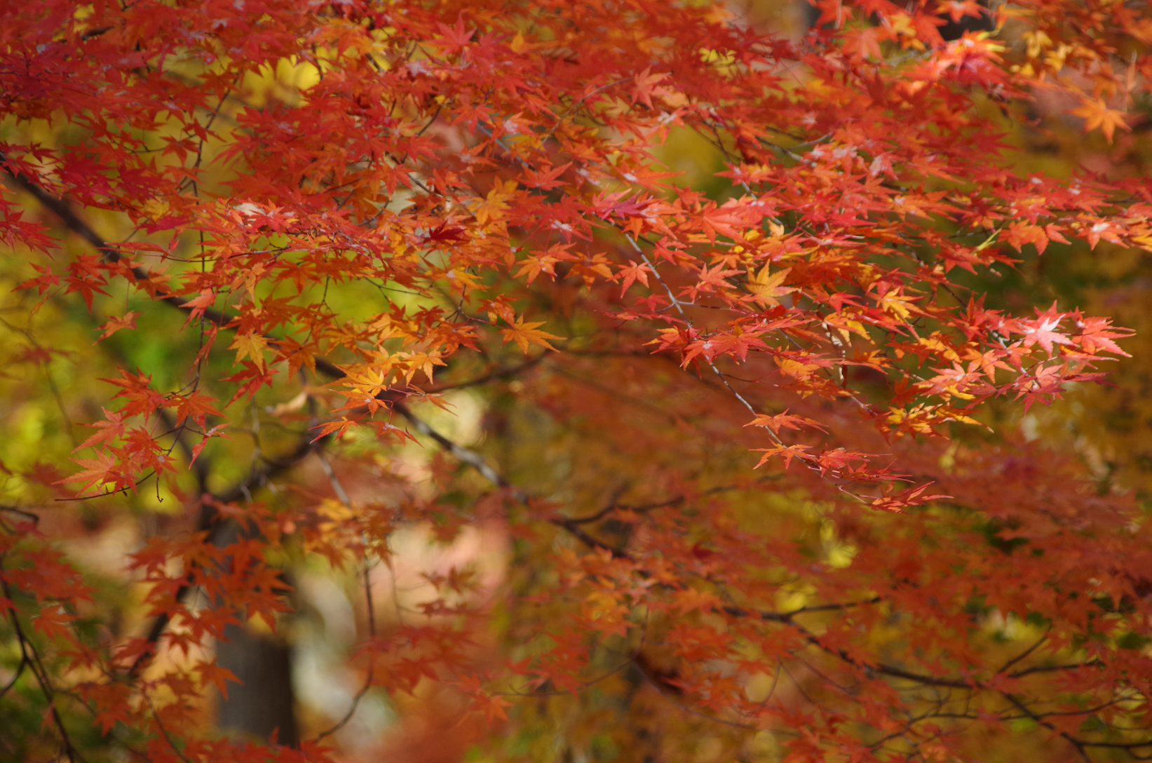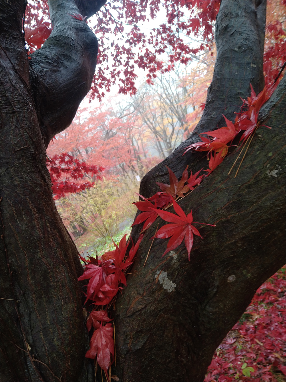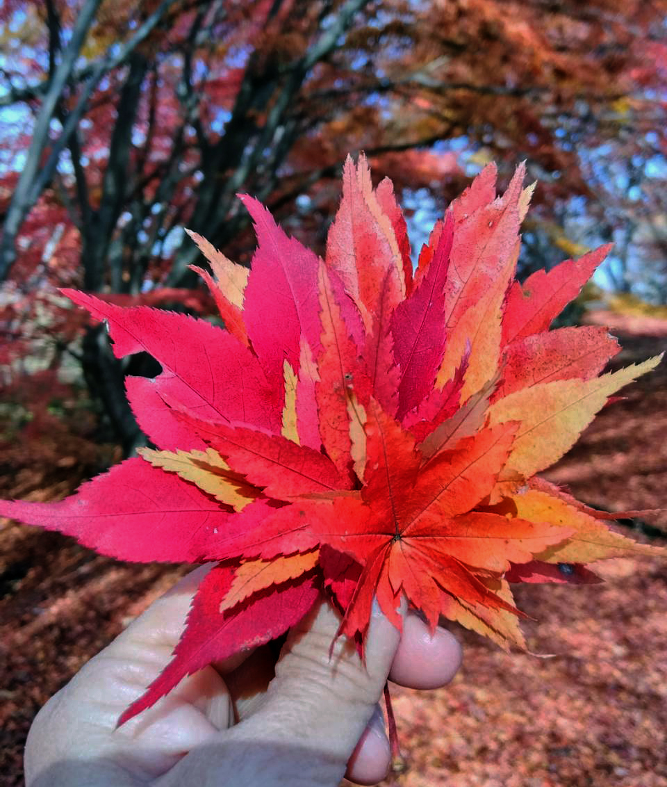 そして、別の色素が増えるために、黄色、オレンジ、赤へ、そして茶色くなって、最終的には葉が落ちていきます。