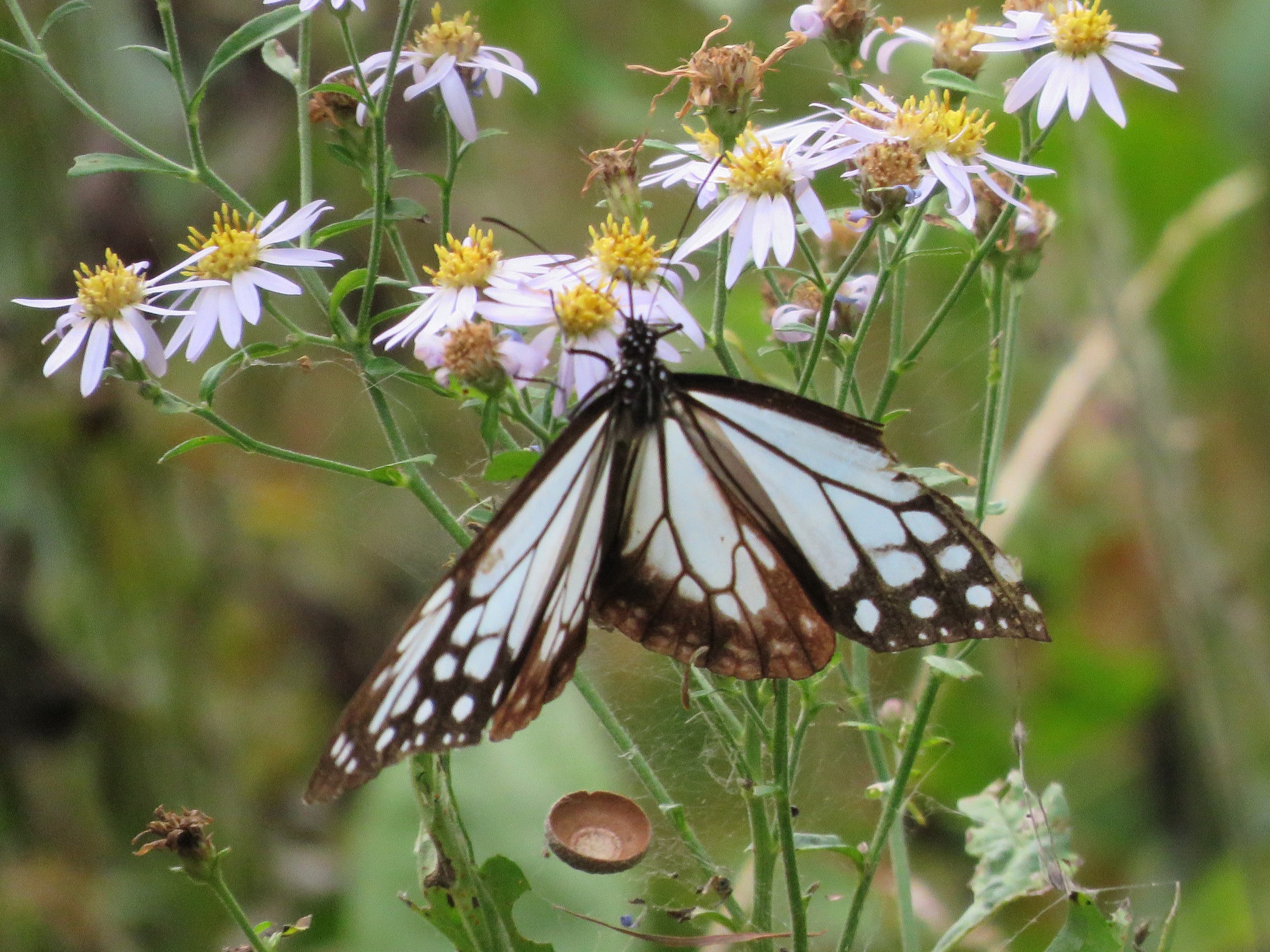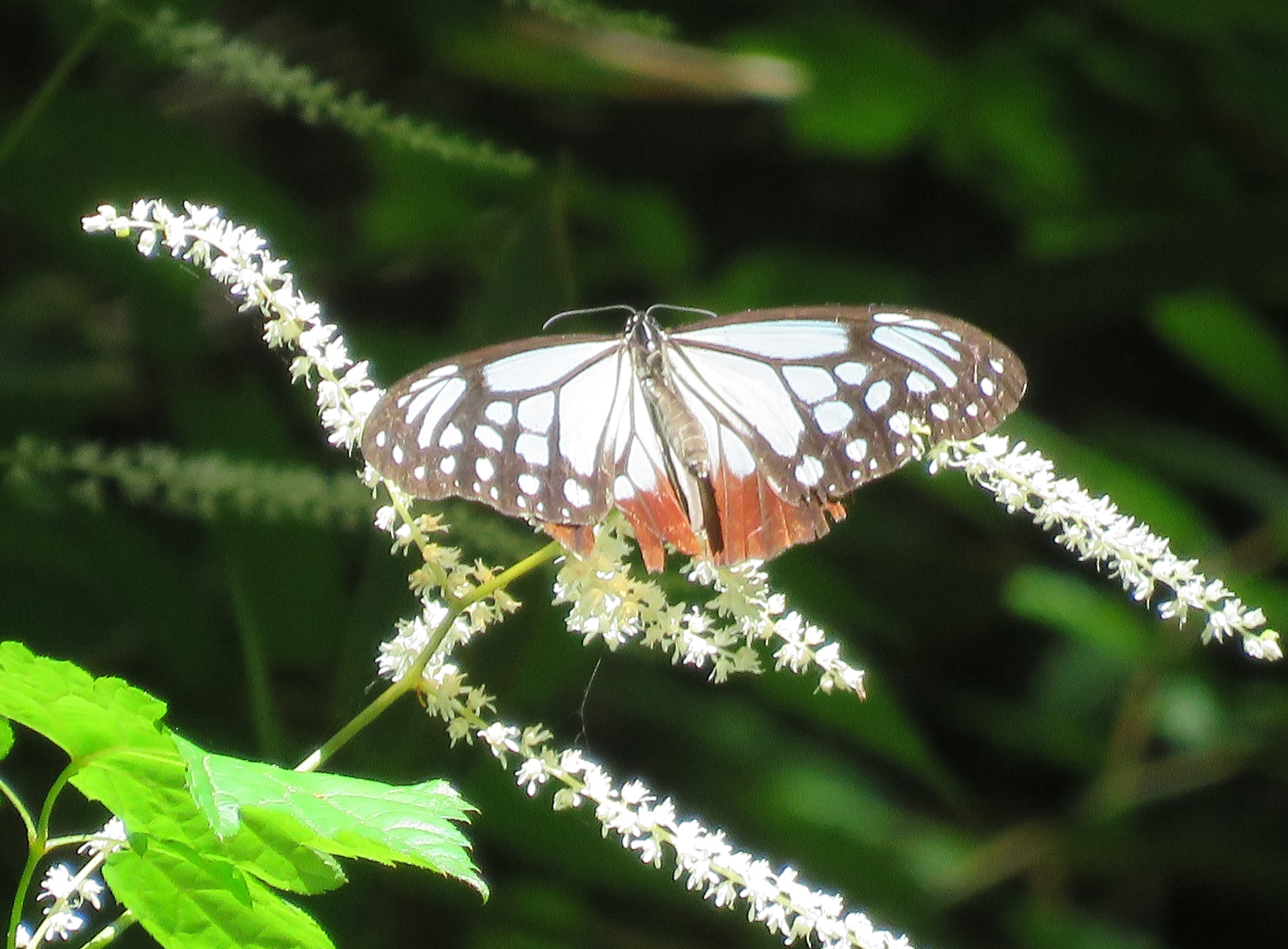 野鳥の森では、蔵王山頂付近で夏を過ごすために移動中のアサギマダラが6月上旬ごろ、秋には南下していくアサギマダラに出会うことができます。