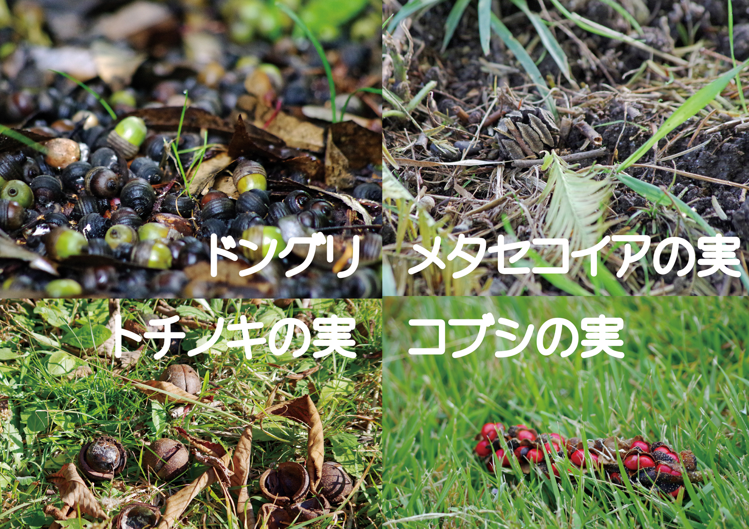 森の大切な秋の恵みです。クマやシカなどの大型動物から、リスやネズミ、カケスなども、もりもりとたべて厳しい冬に備えます。生き物たちが地面や木のうろにためこんで忘れられたドングリから新しい木が芽生えてくるのも大事な自然の循環のひとつです。