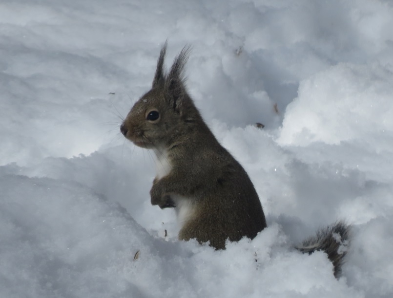 ニホンリス(ホンドリス)東北地方では普通にみられるリスですが、日本国内では絶滅しているといわれる地域もあり、またタイワンリスなどに生息域を追われている地域もあるそうです。
