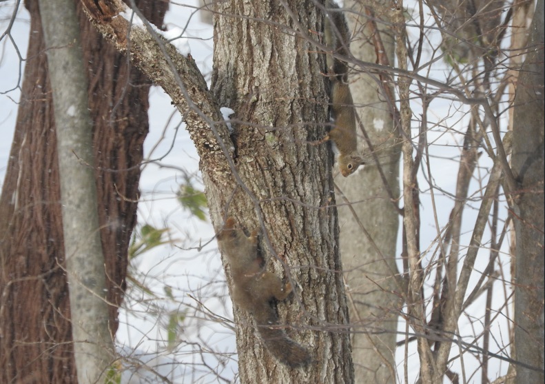 野鳥の森近辺でのニホンリスは1月から2月にかけて妊娠、3月から4月に出産、5月から6月に子リスは独り立ちします。それでもしばらくは兄弟で過ごしたりしていることもあるようです。
