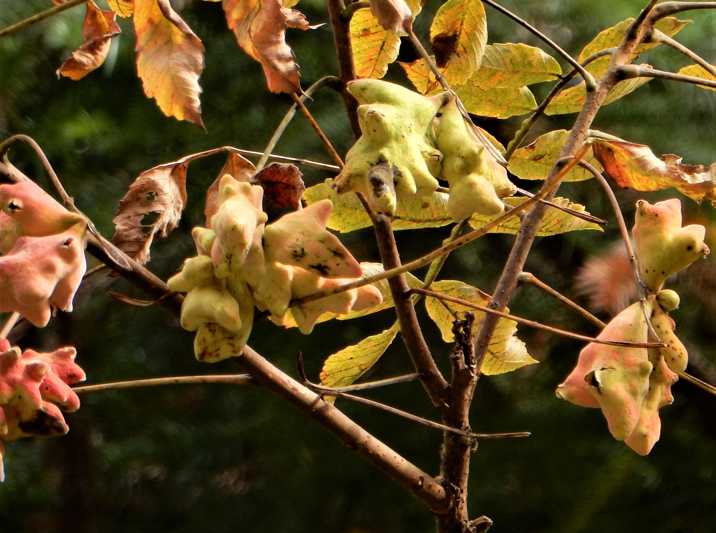 ヌルデというウルシ科の木があります。この木にアブラムシの仲間が作る虫こぶ(ヌルデミミフシ(白膠木耳五倍子) 中でアブラムシが集団生活しています)を粉にした五倍子粉(ふしこ)はタンニンを多く含んでいます。明治以前まで、何百年も引き継がれていた歯を黒く染める、お歯黒という風習がありました。