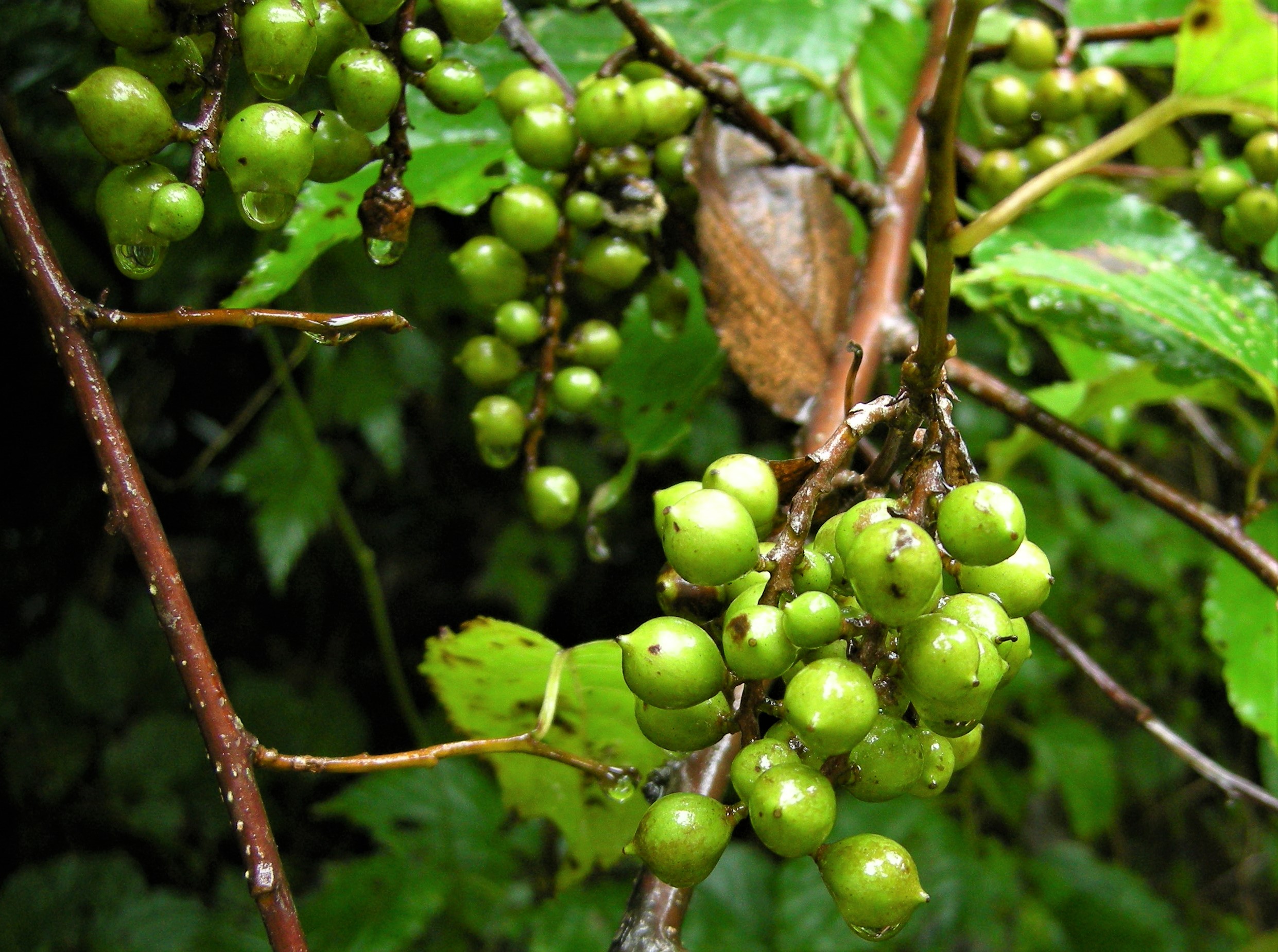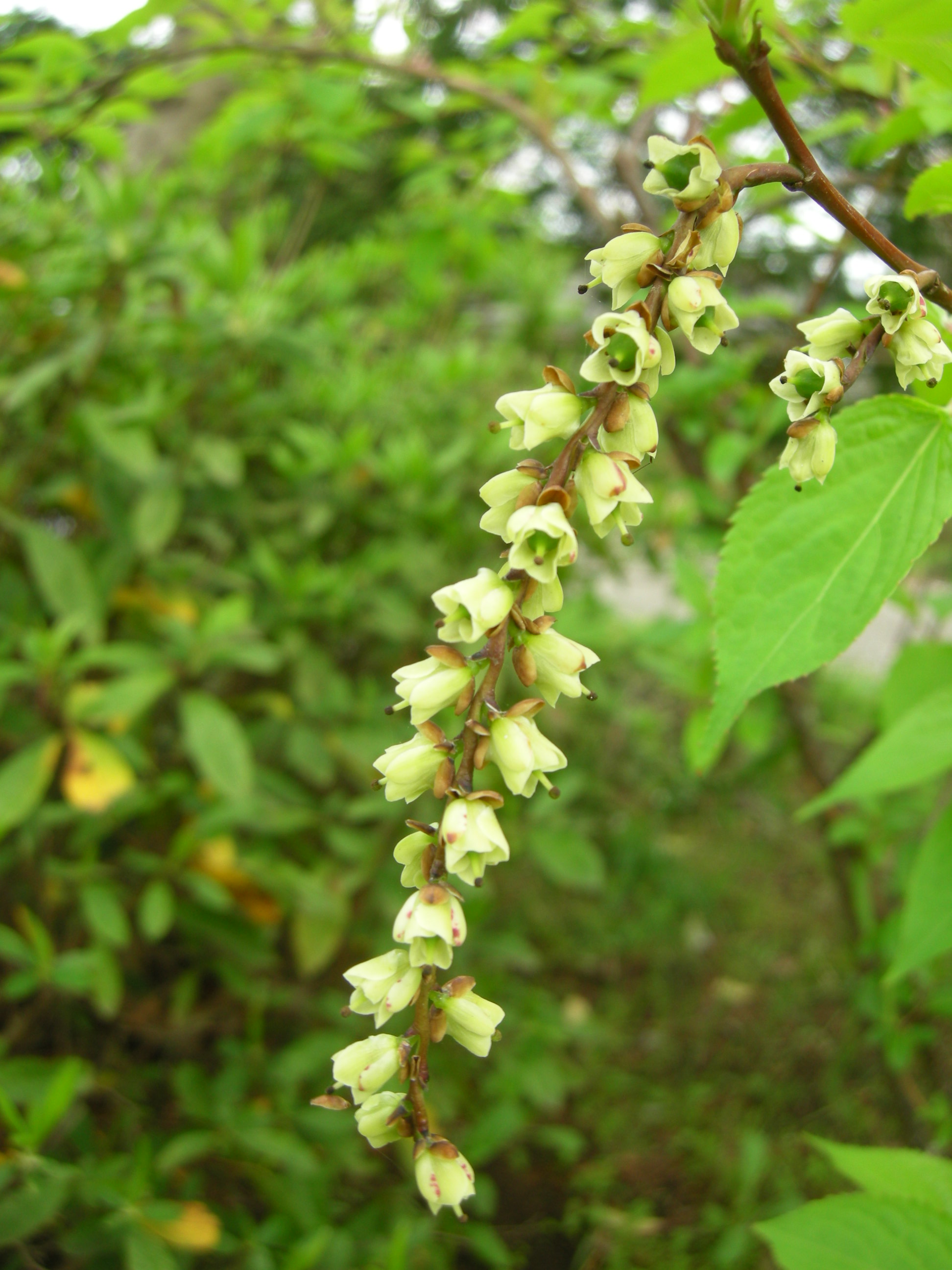 雌雄別株で、雄株のほうが花が多く、花穂も長いようです。花の中心に雌しべが見える雌株は雄株の花穂に比べて、丈が短く、花の数が少ないようです。夏には果実が実ります。葉の形、大きさ、果実の大きさなどに変異が多く見られます。