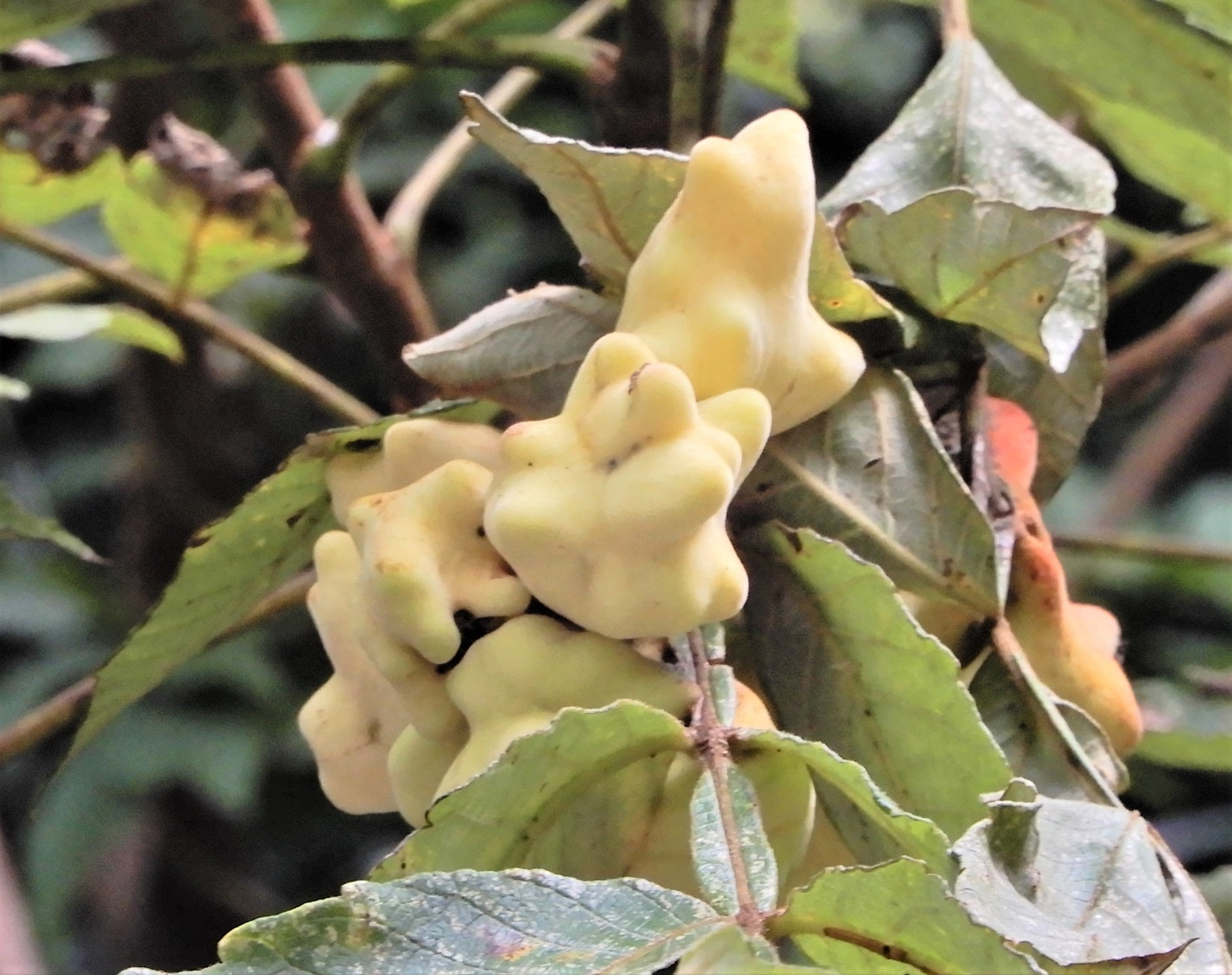 この歯を黒くする五倍子粉(ふしこ)は高価なもので、庶民が使うのはその代用品で、同じくタンニンを多く含むキブシの果実を粉にしたものでした。キブシ(木五倍子)の名前の由来です。