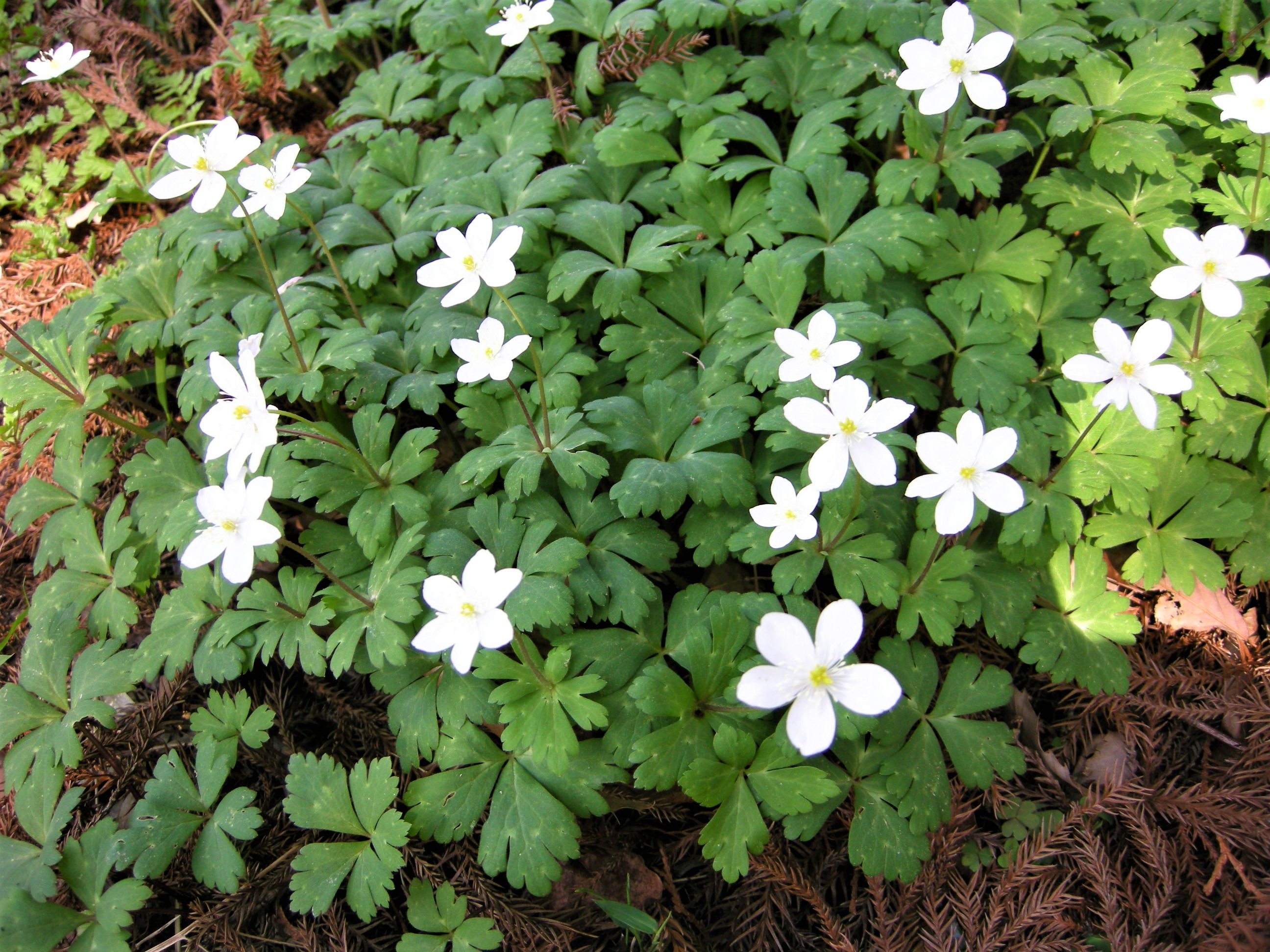 ♬二人はニリンソウ…♬という歌がありました。二輪ばかりではなく、三輪出てきて咲いている株も見られます。ちょっと問題?などと下世話な話題で盛り上がったりします。