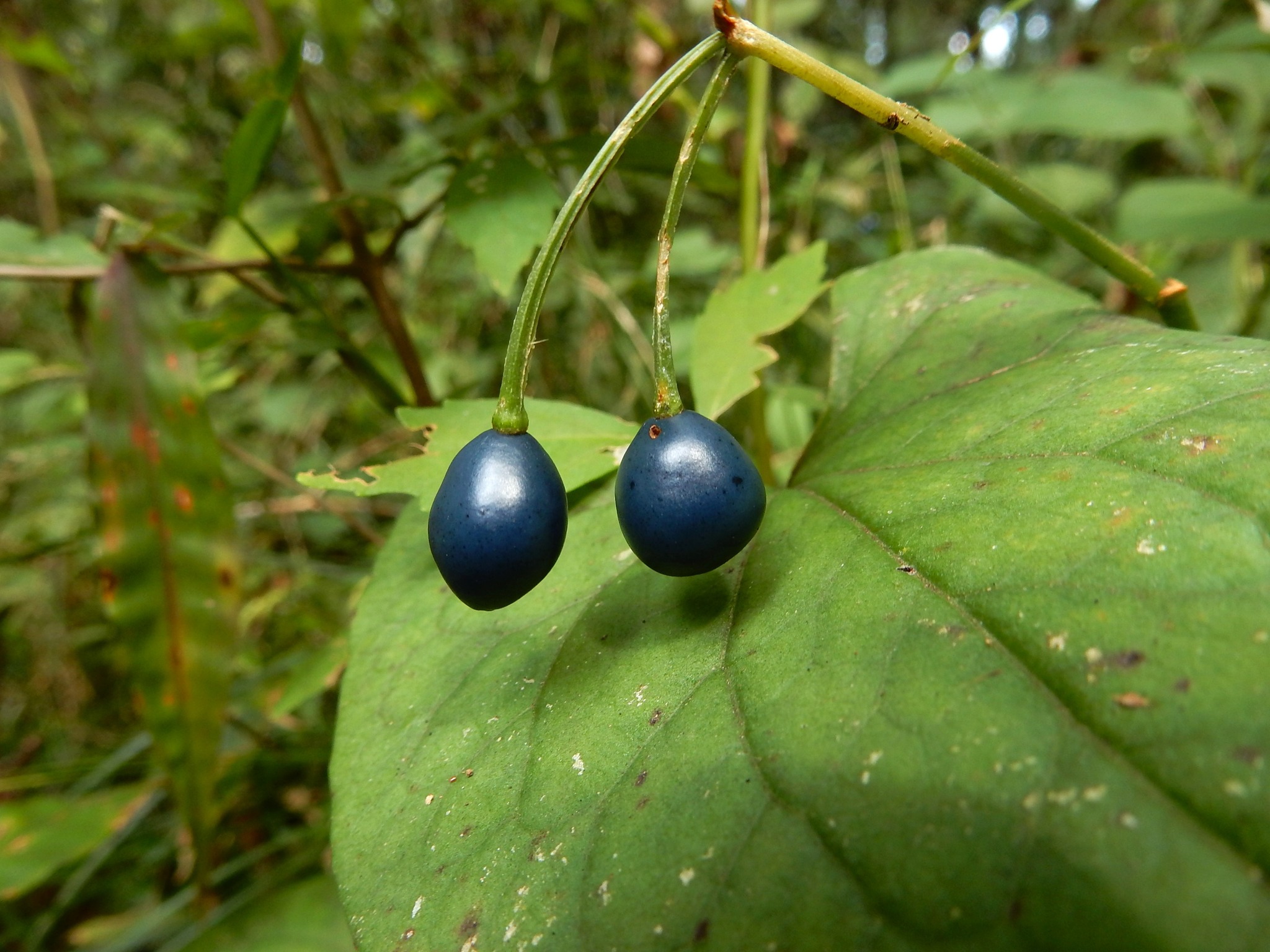 花後、結実して黒い実をつける株もあります。鳥が種子散布に貢献すると言われています。