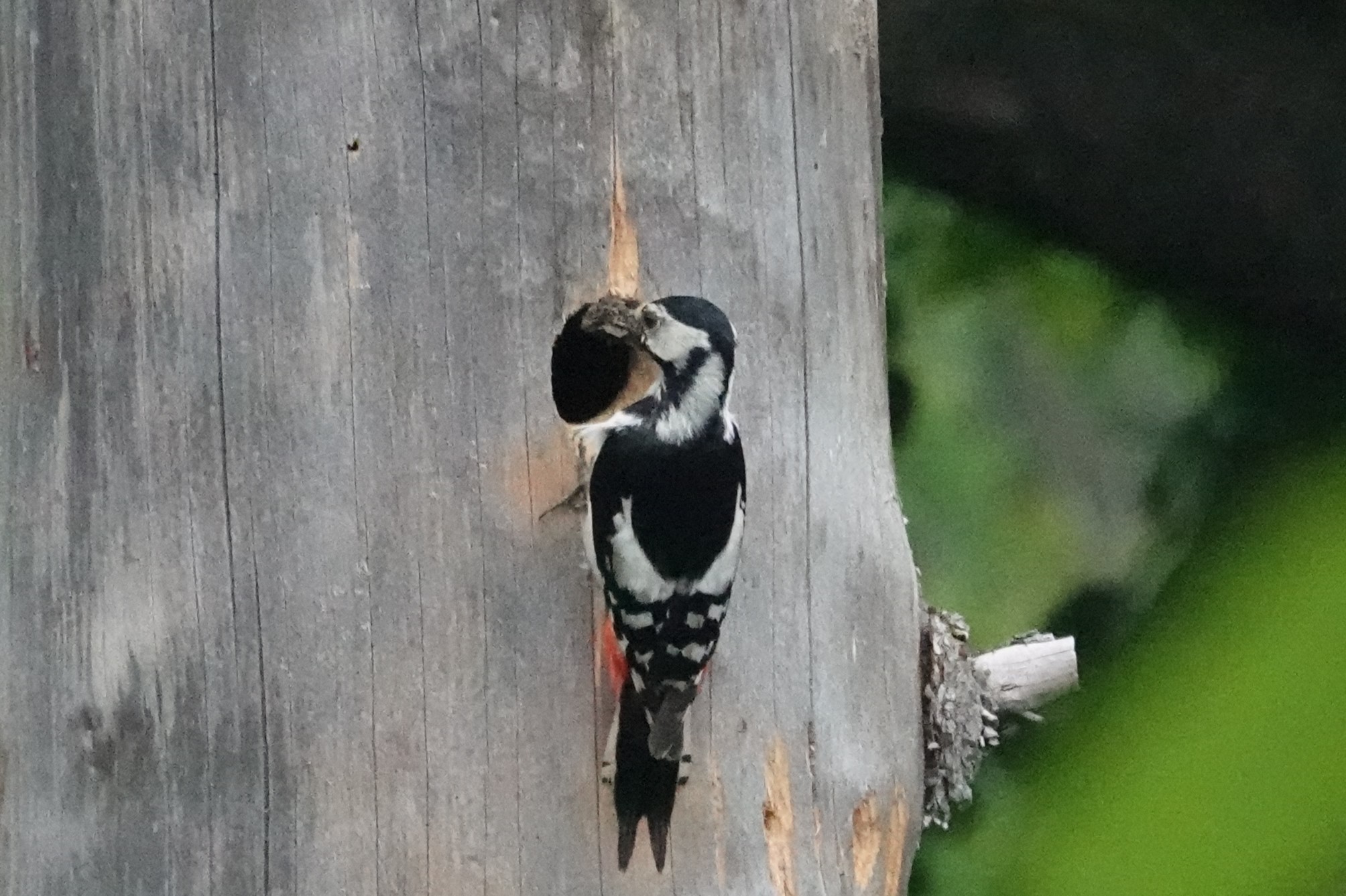 子育てのために毎年新しい巣を複数掘って、その中の1個を使います。使われない巣や昨年の古い巣はゴジュウカラやシジュウカラなどの自ら巣穴を掘ることが出来ない小鳥、或いはモモンガやヤマネなどの小動物が巣として使います。キツツキ類は他の動物に巣穴を提供するという森林生態系の中での重要な役割を果たしています。