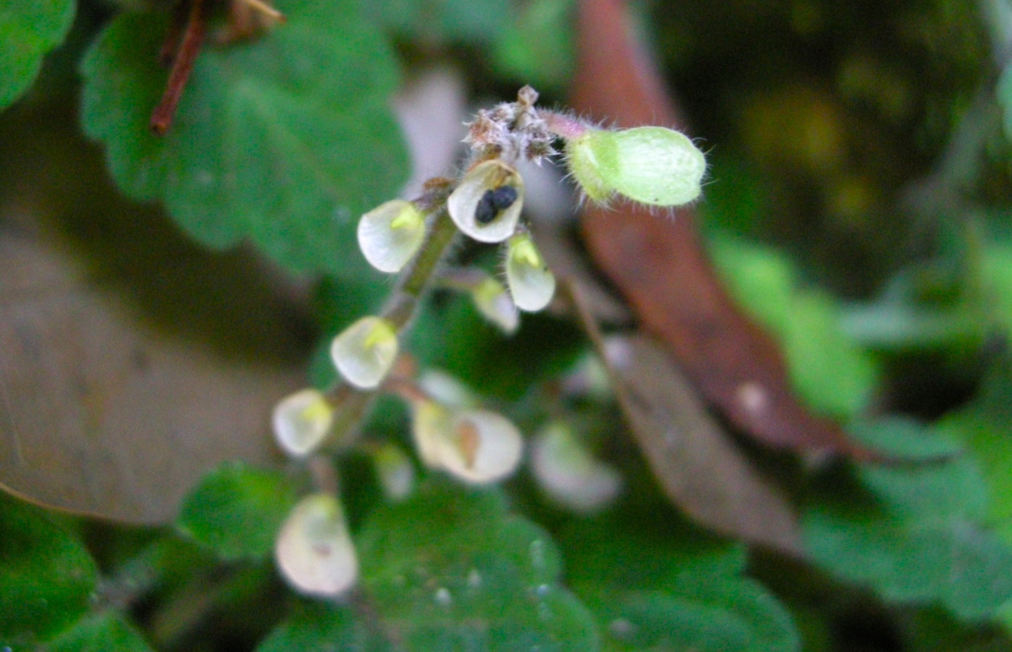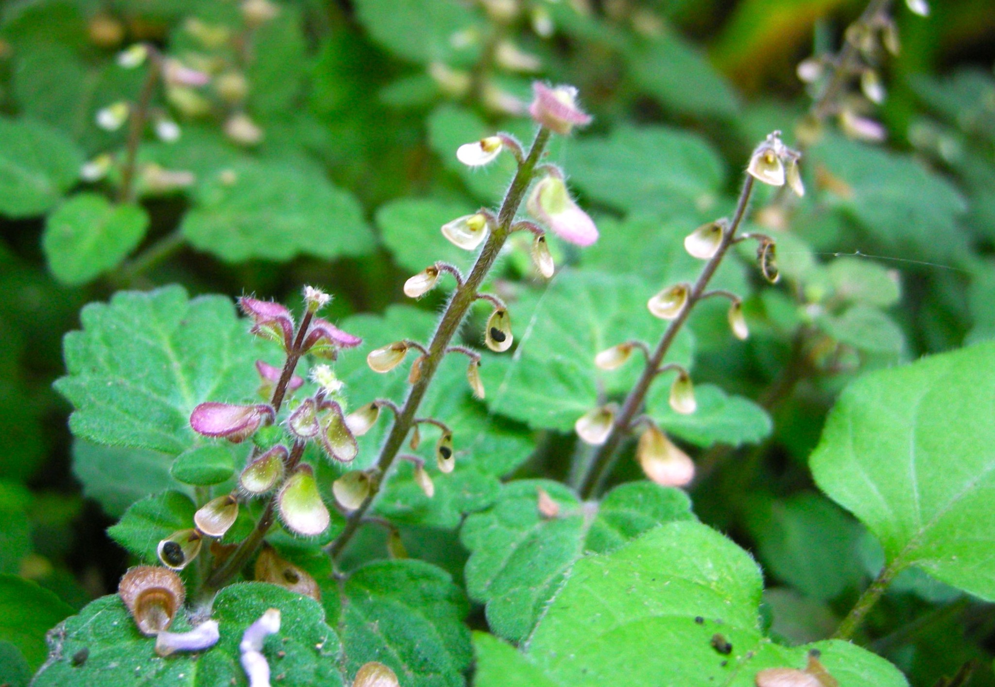 果実が熟すと、上唇は少しの刺激で落ちてしまい、種子を載せた下唇のスプーンが残ります。