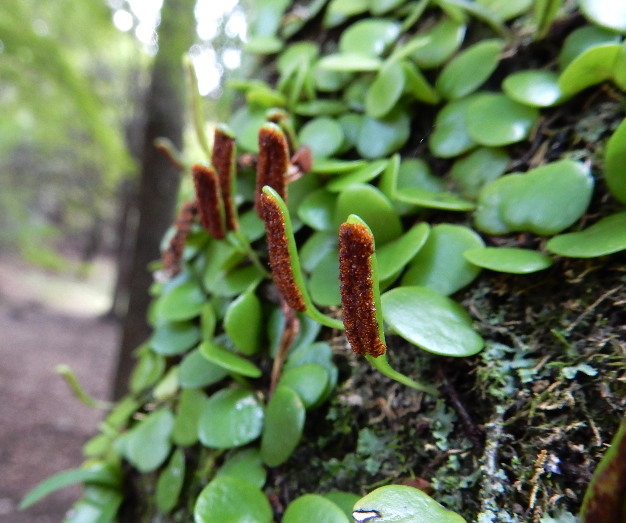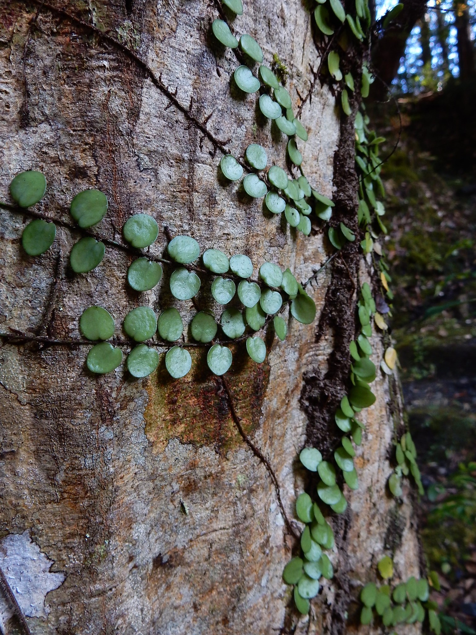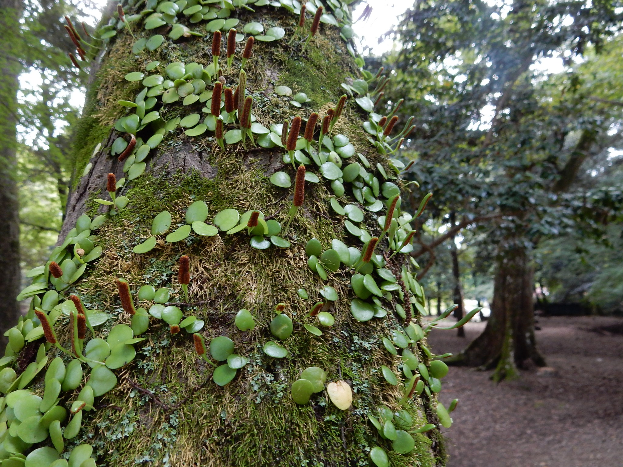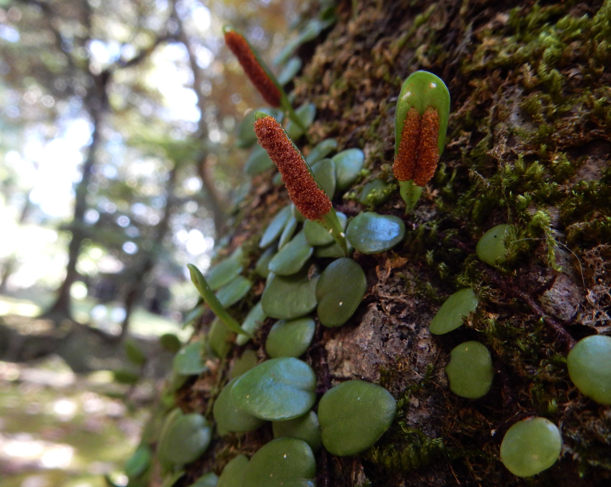 寒冷地を除く山地の樹皮や岩など、比較的湿気の多いところを好んで張り付くように生える常緑のシダの仲間です。