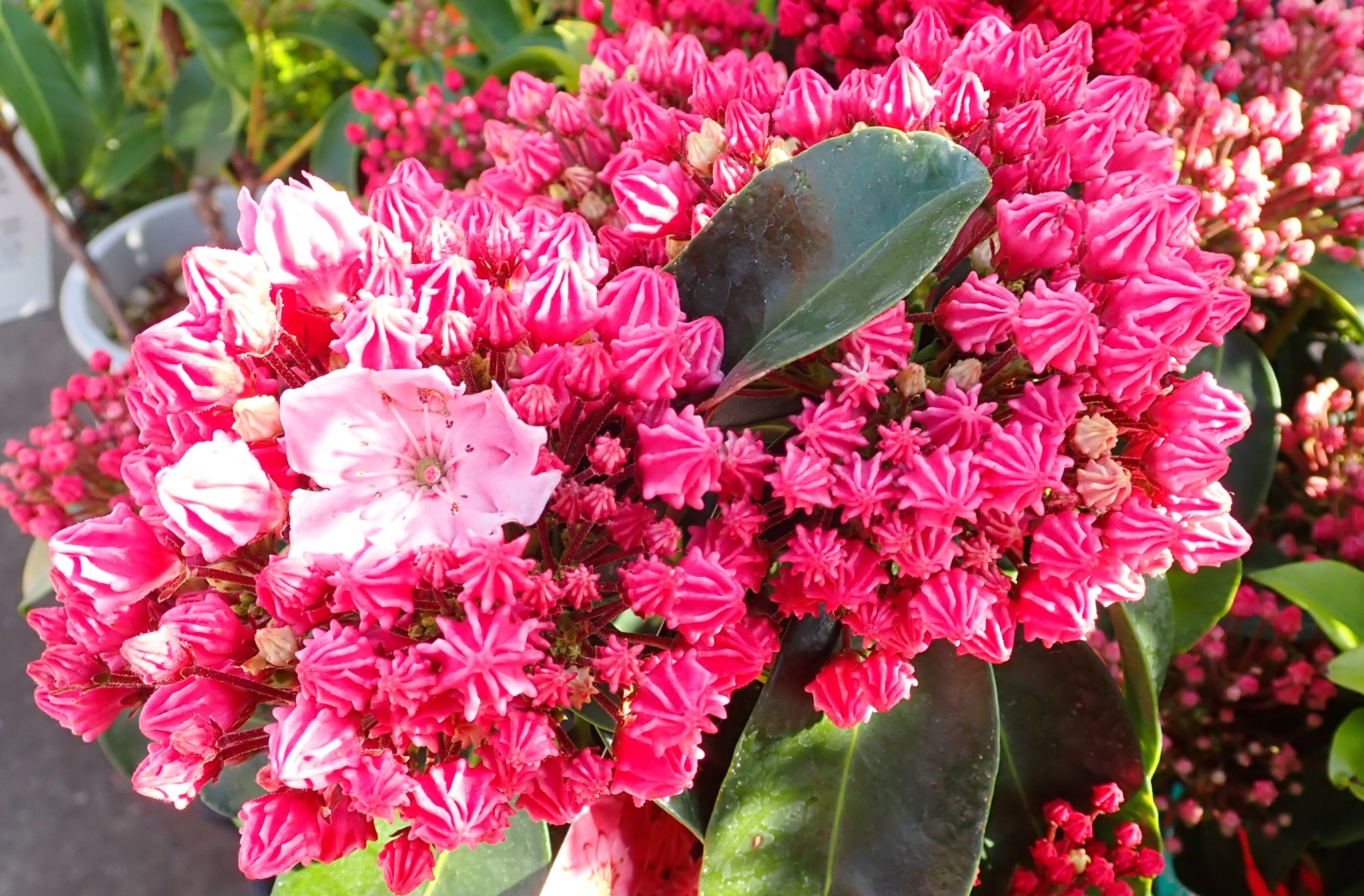 カルミアはつぼみの形が「金平糖みたい!」と人気を集めます。
