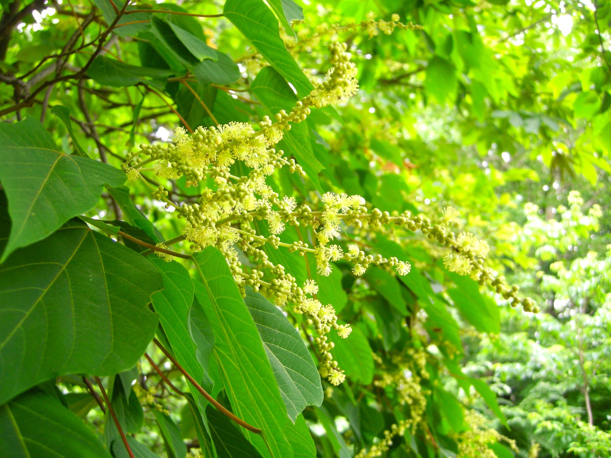葉の基部に見られる腺点(蜜の出るところ)にはアリが集まっていることがあります。
