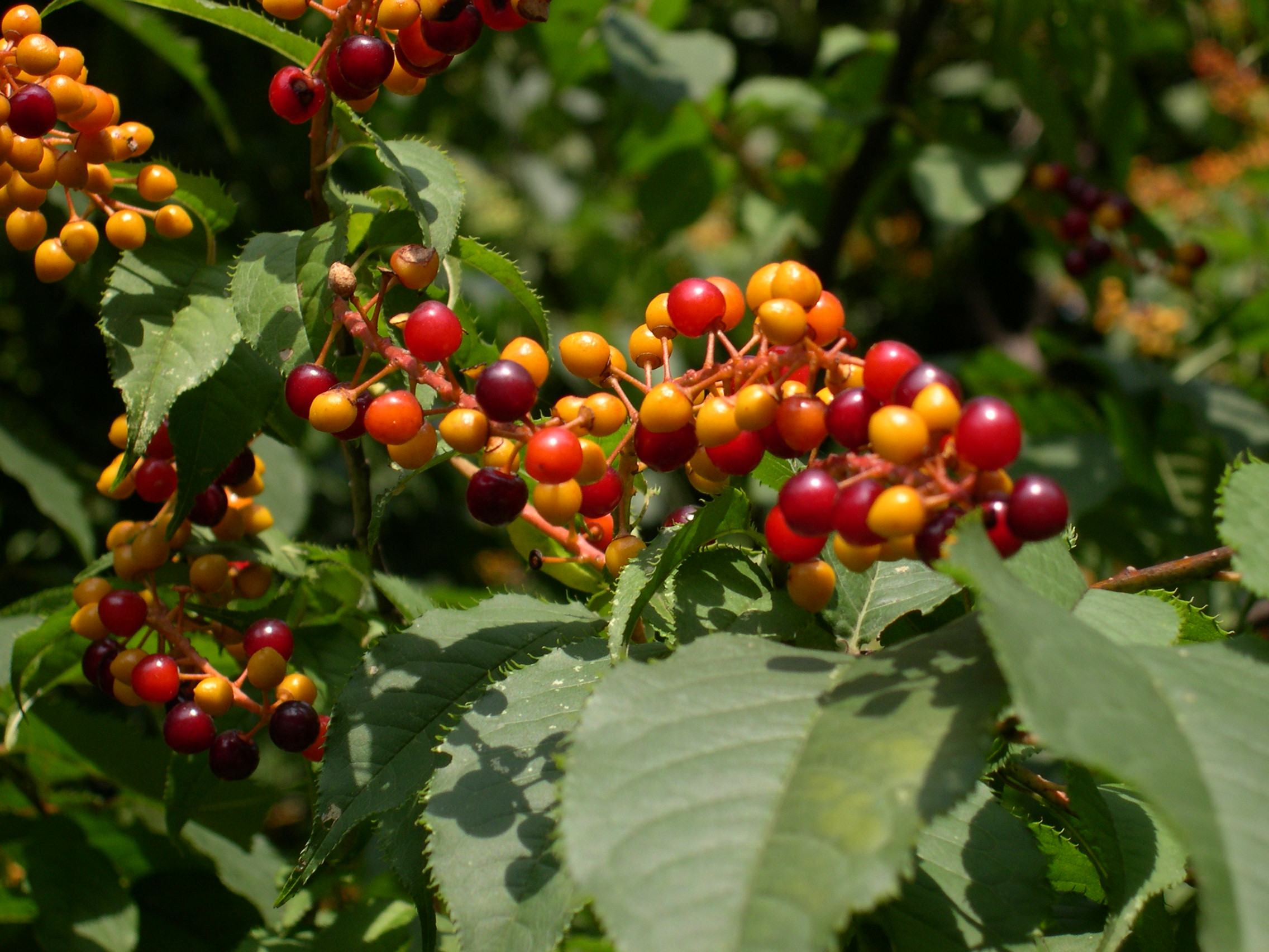 古い名前をハハカ(波々迦)と言います。雑木林の林縁に白い花が咲き乱れます。名前の由来は、古代からウミガメの甲羅やシカの骨に溝を刻み、ウワミズザクラを燃やした火でそれらをあぶり、その時に出来たひび割れの形や方向で吉凶を占いました。上にできる溝で占ったことに由来します。(占う方法は諸説あるようです)