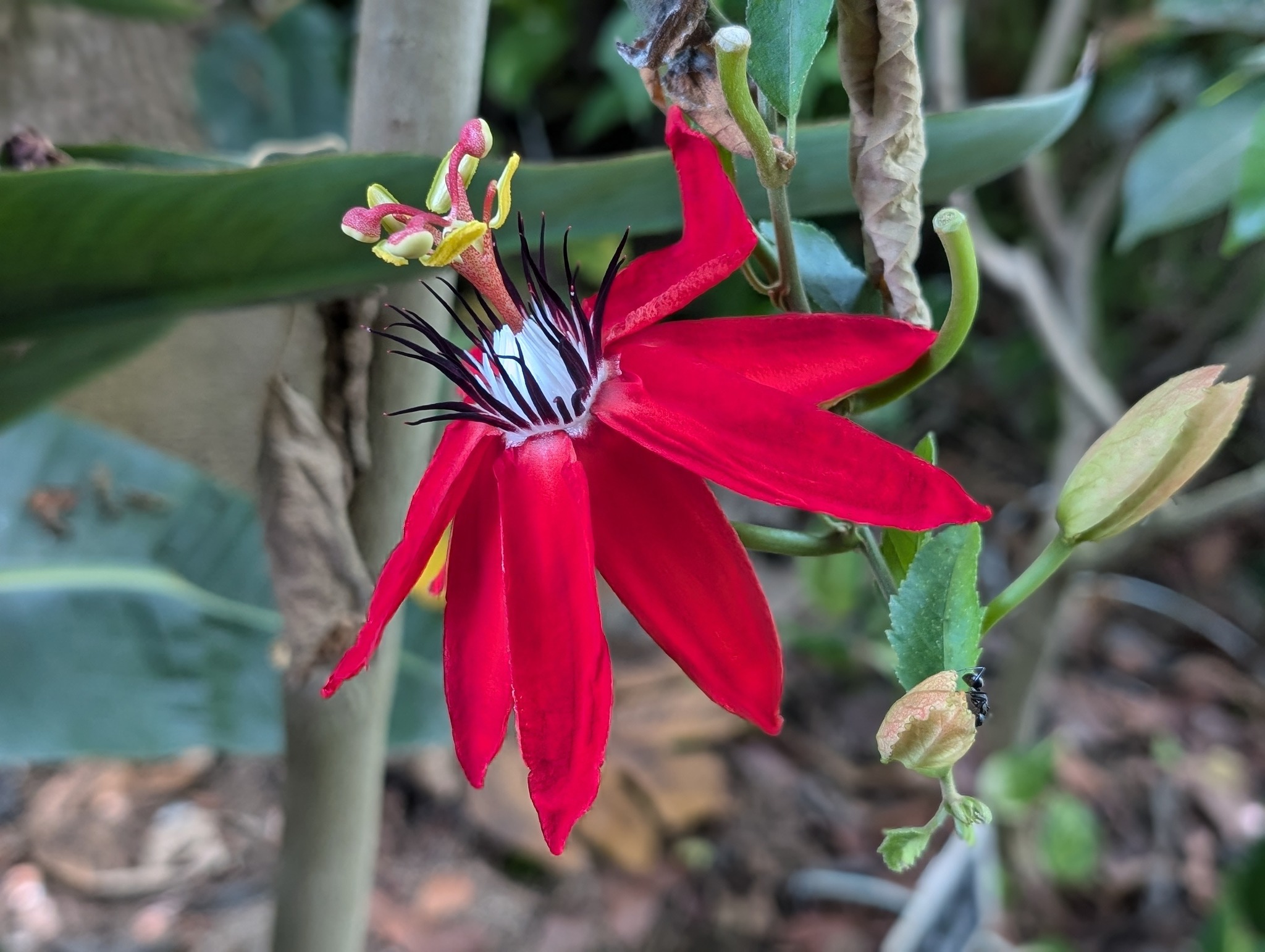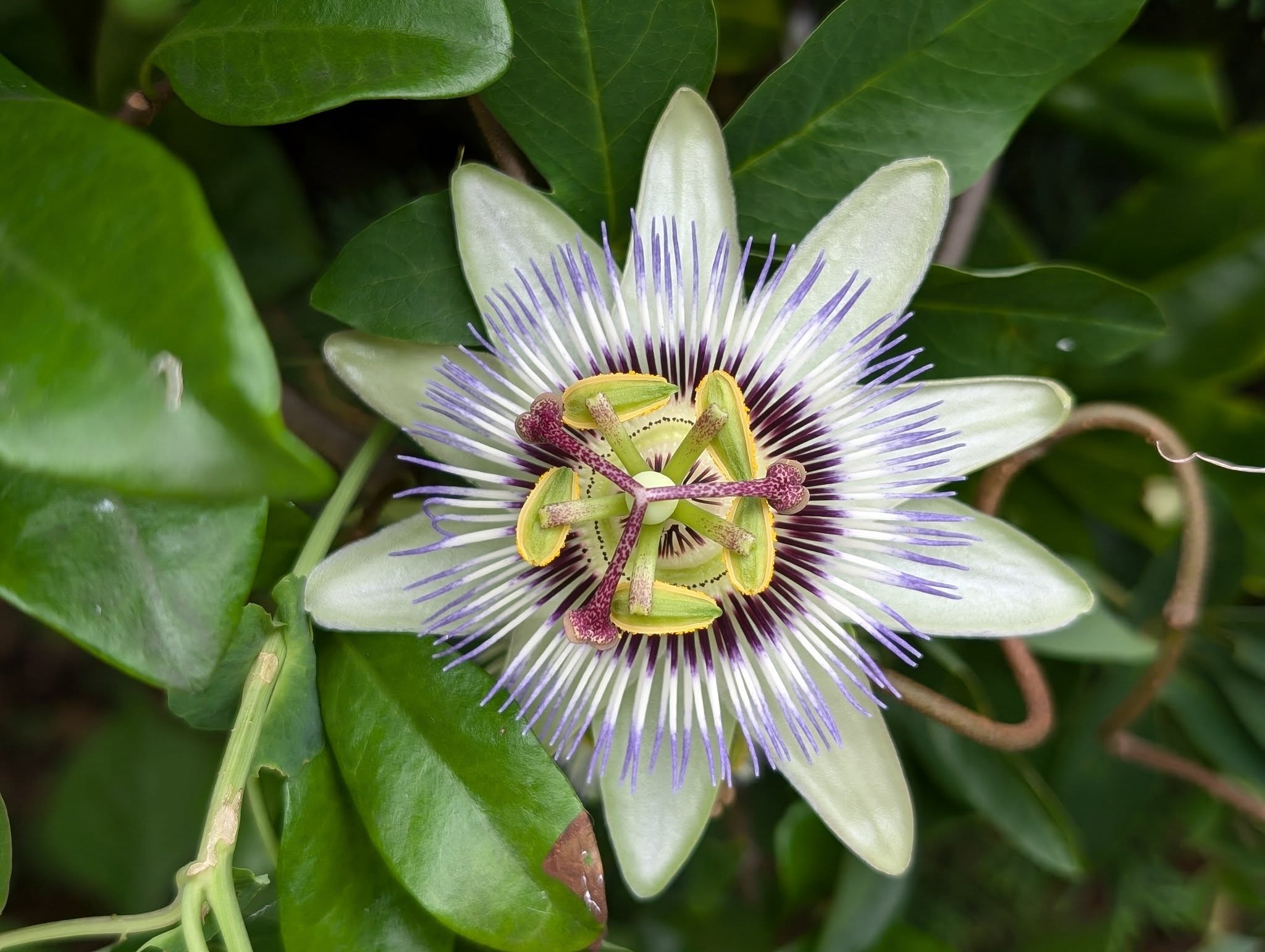 英名 パッションフラワーpassion flower は「キリストの受難(パッションpassion)の花」を意味しています。16世紀、この花の原産地である中南米に派遣されたイエズス会の宣教師たちによって、布教に利用されました。
