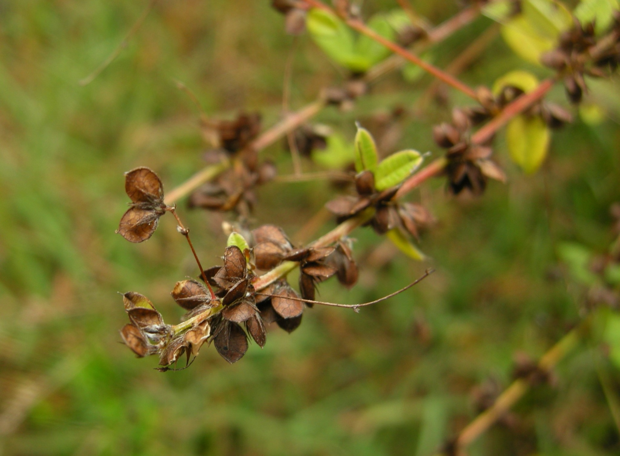 秋に1個の種子を含む小さい豆果を作りますが、咲いた花全てが結実するわけでもないようで、細い果柄だけが残る姿も見られます。