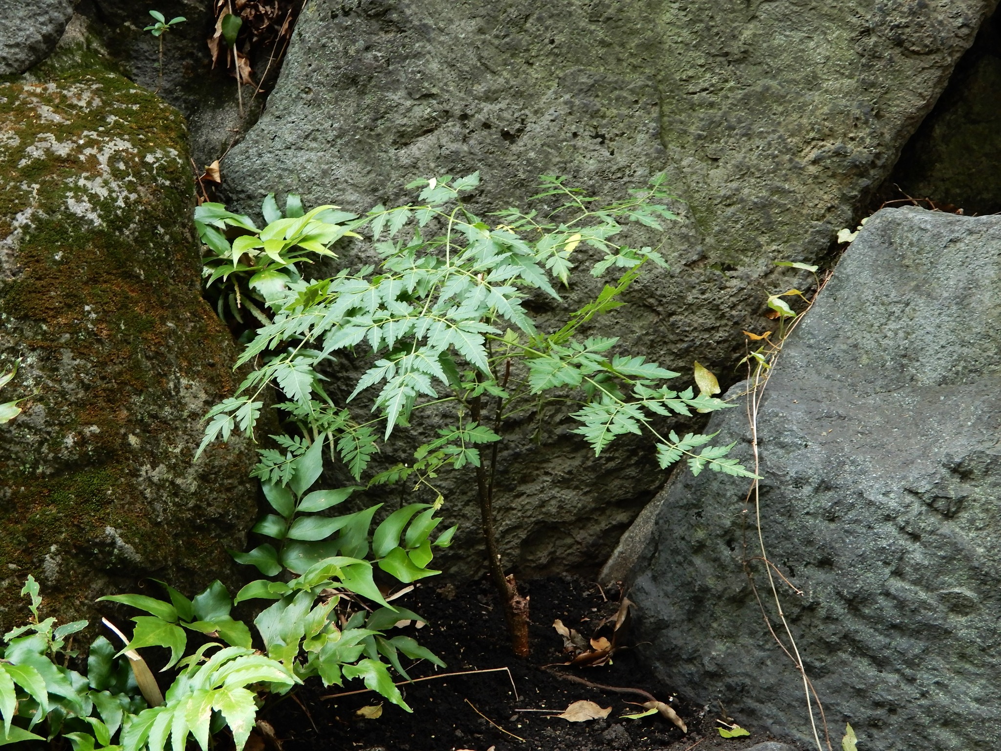 近年、庭木や街路樹として多く植えられていますが、一方で、畑の傍や、雑木林の林縁など、所かまわず生えているのが話題になっています。果実を鳥が食べて、種子を運んだことに因るのですが、環境破壊と問題になったりします。