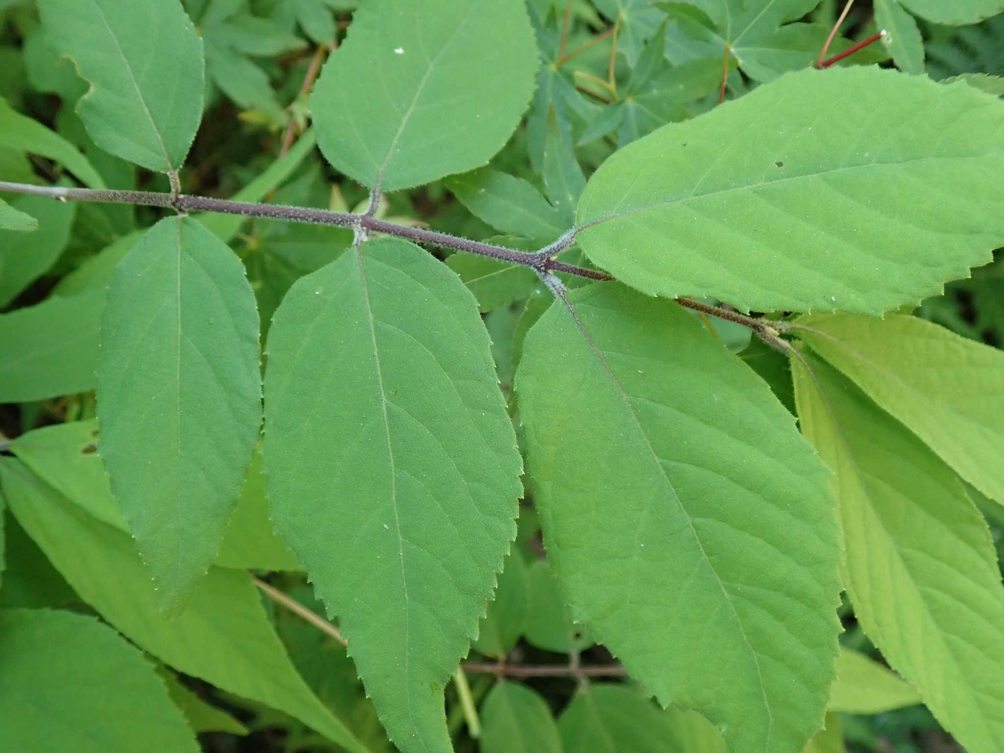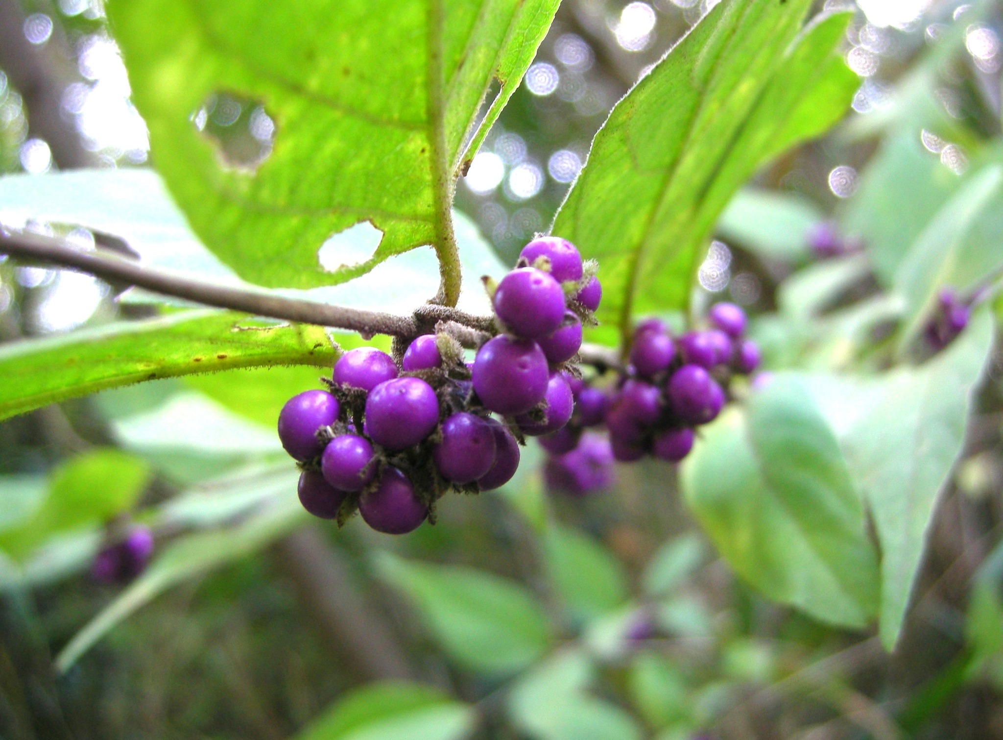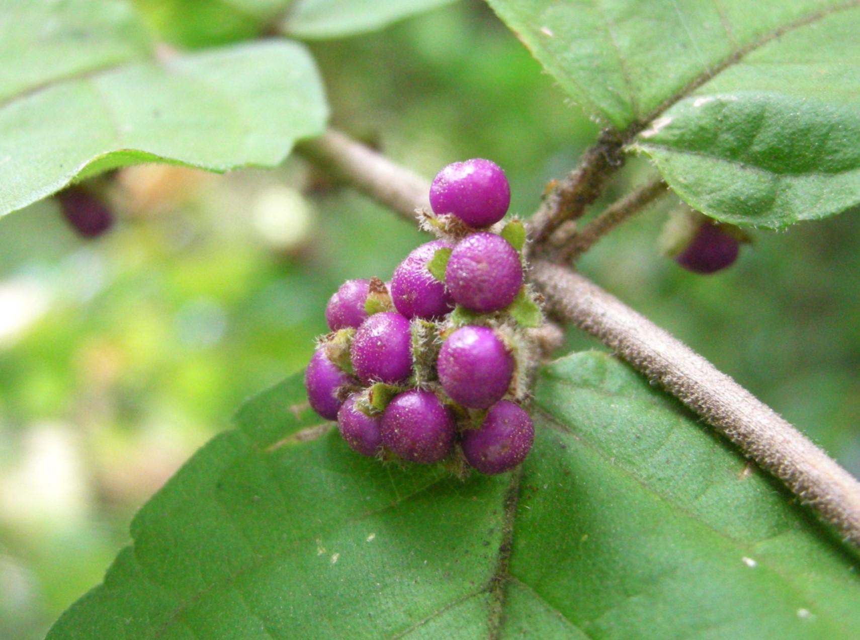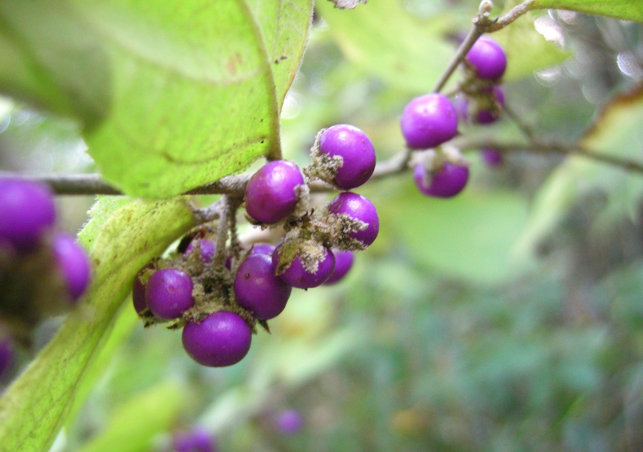 花も果実もムラサキシキブやコムラサキに似ているのですが、全体に毛が多く、葉に触るとふかふかした感じがします。