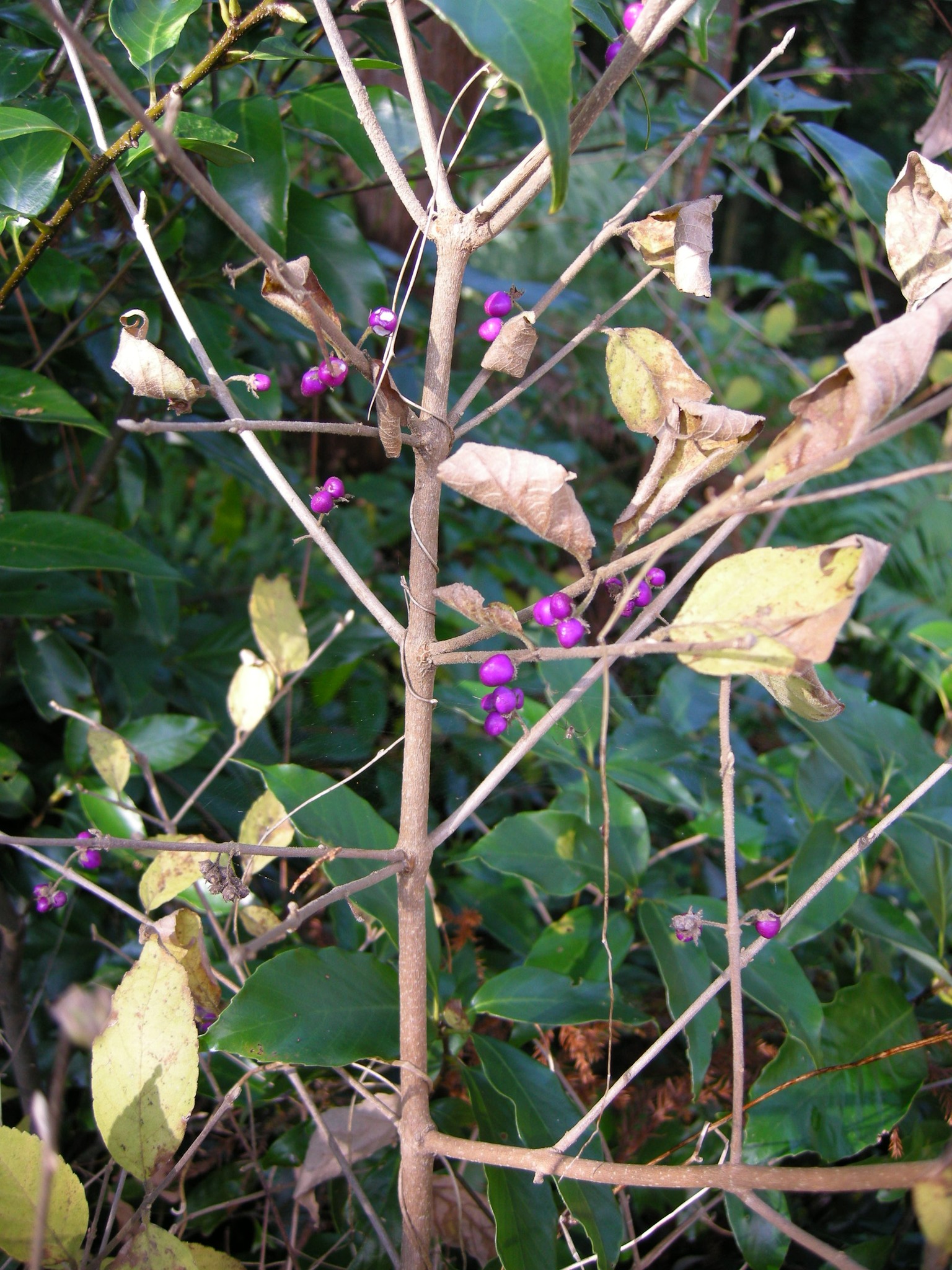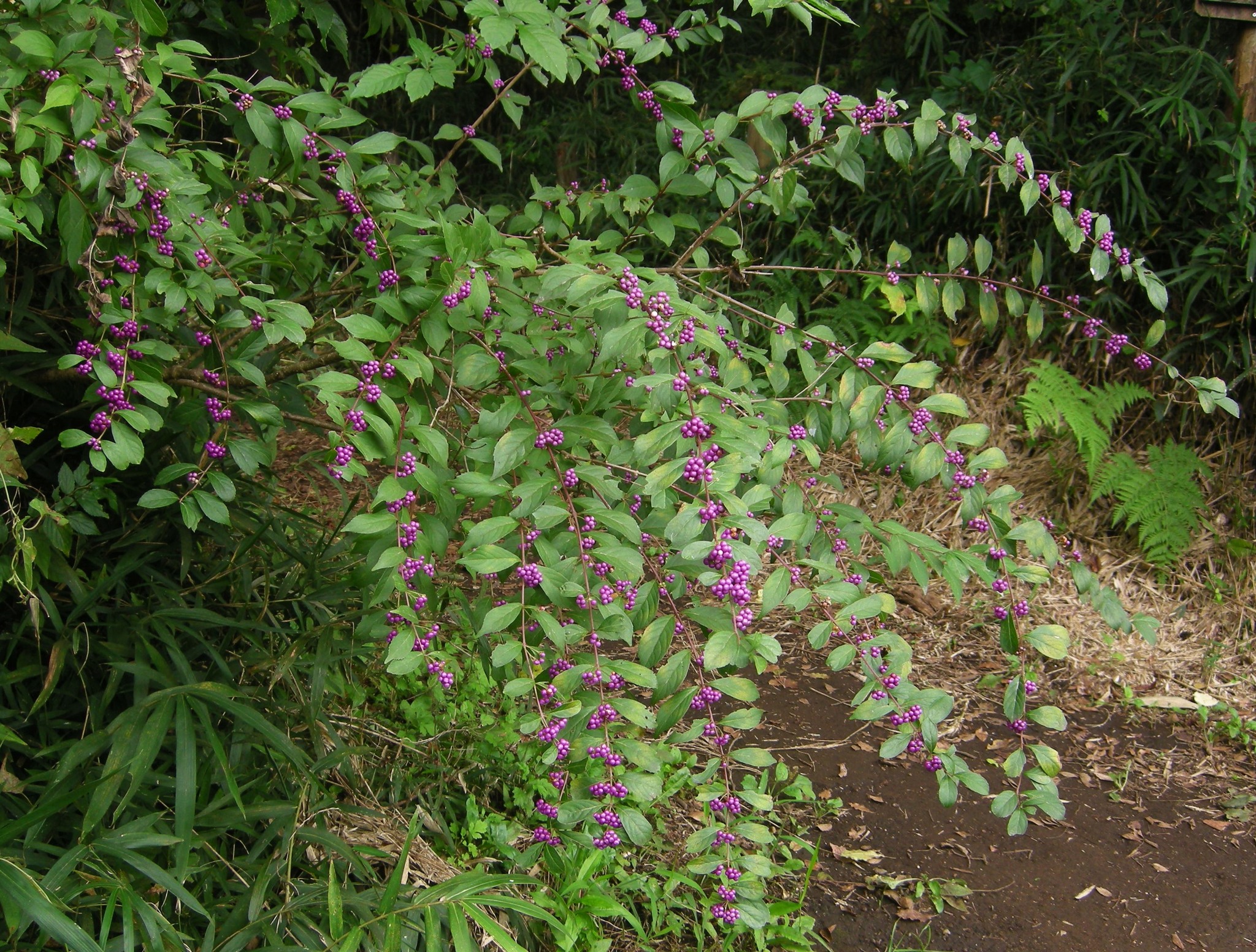 ムラサキシキブに似ていて、藪の中に育つ意という説がありますが、明るい林内を好みますから、藪内には育っていないかもしれません。
