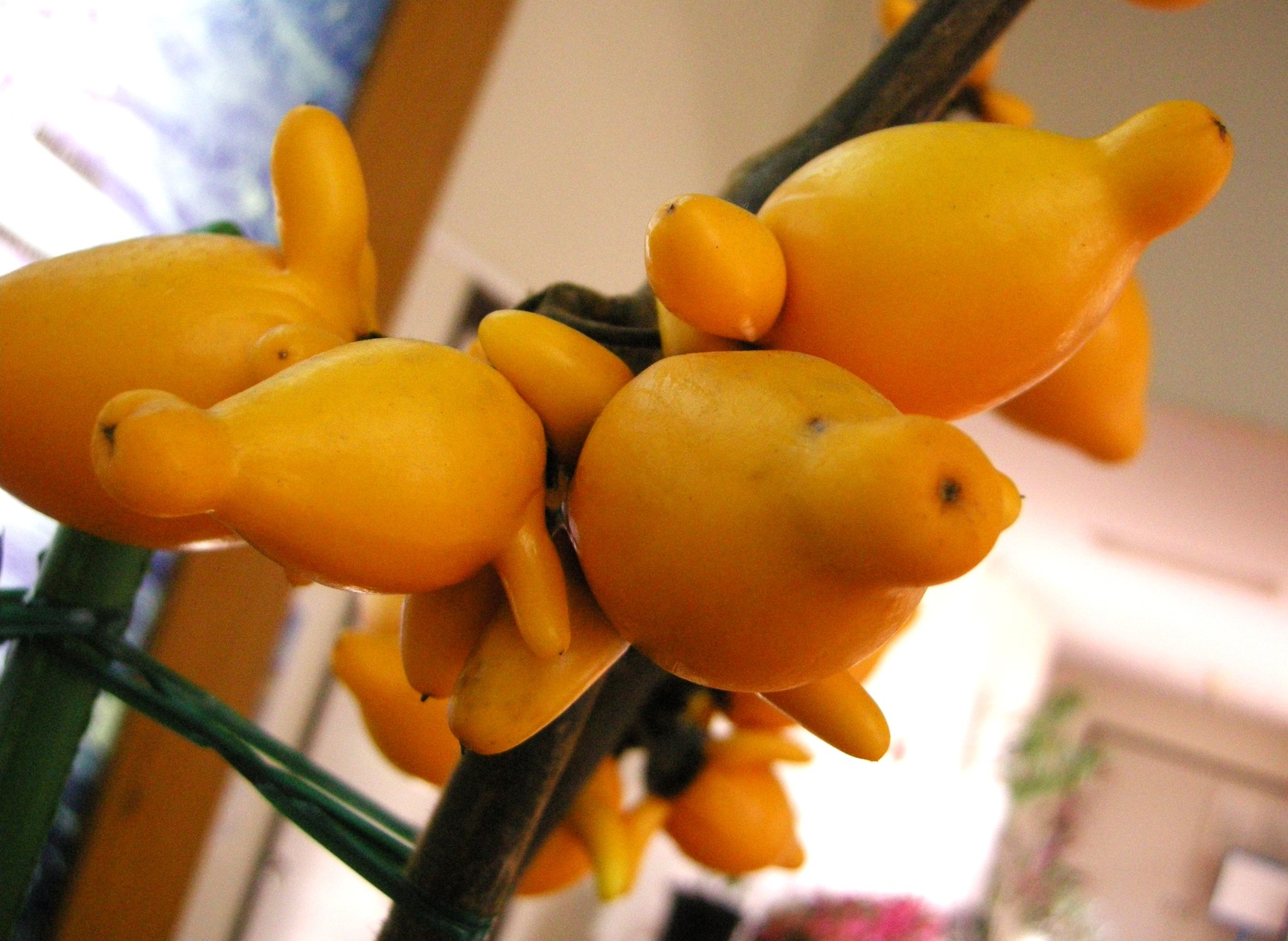 クリスマスの飾りつけが始まるころ、大きな黄色い不思議な形の果実が注目を集めます。英名はNipple fruit で、果実の上の突起を乳頭に見立てたものと言われています。