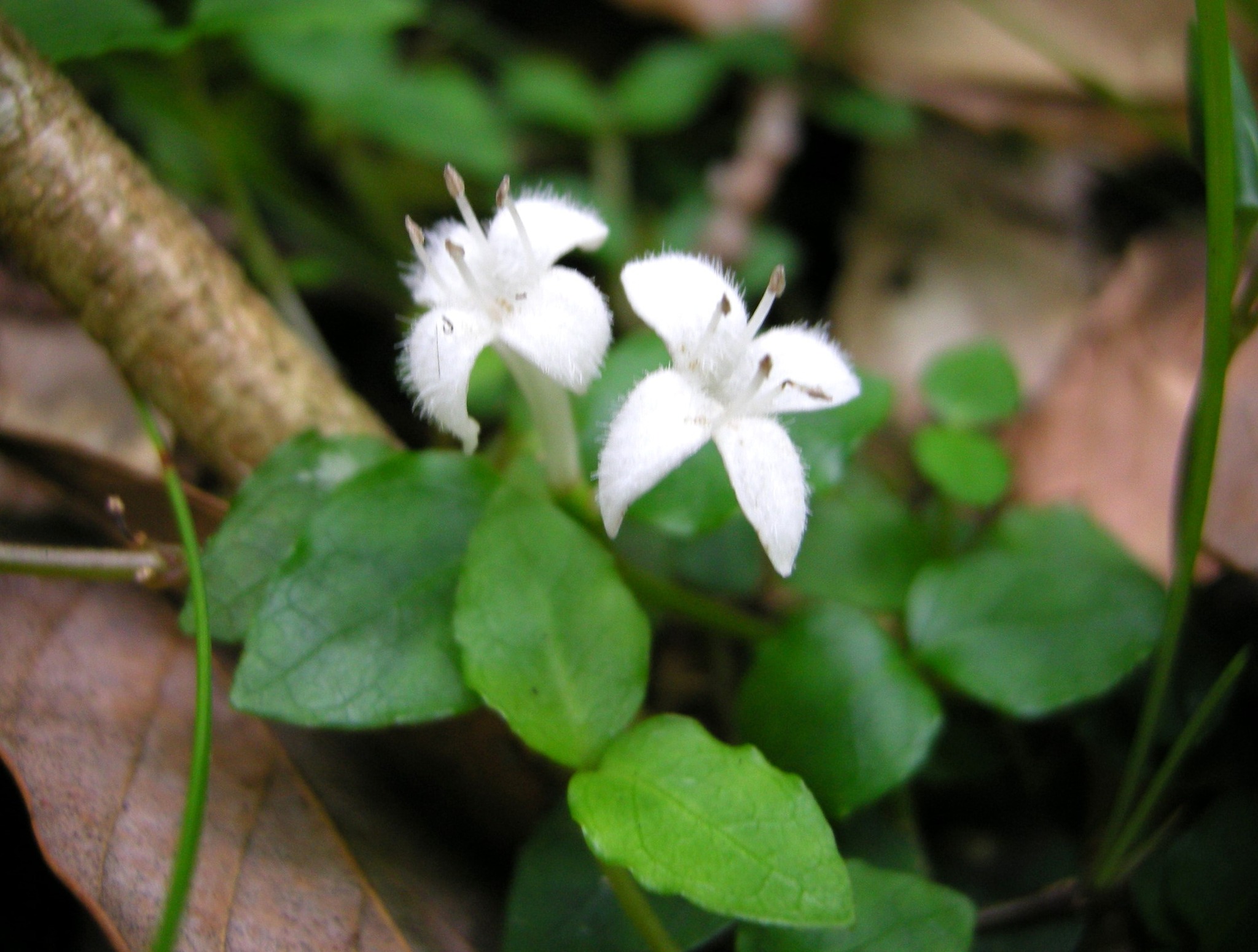 お正月に『千両、万両、有り通し』と言っておめでたい植物が飾られますが、その一つのアリドオシ(蟻通し)に似ていて、蔓性であることからの名前と言われますが、アリドオシにある蟻を突き刺すような刺は、ツルアリドオシにはありません。