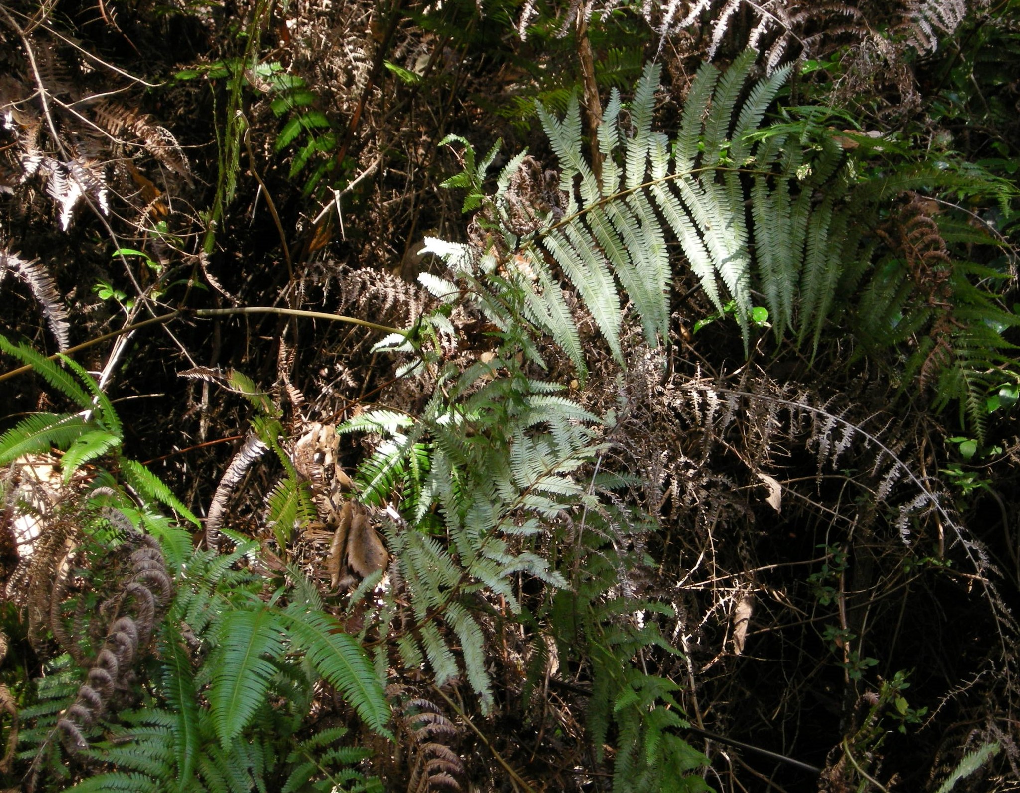 葉の表は緑色、裏は白色をしていることから、ウラジロ(裏白)と呼ばれます。