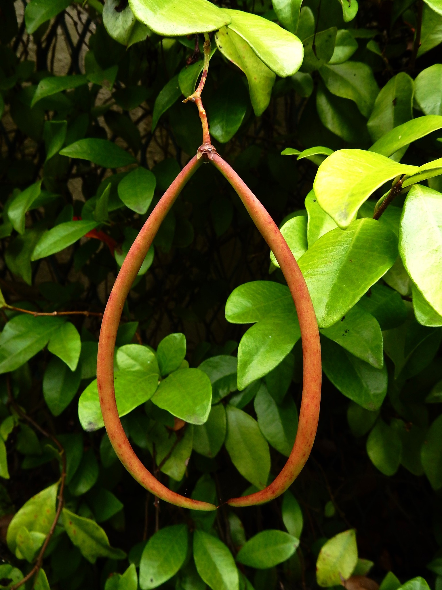 日本在来の植物で、雑木林などで木にからんで繁茂する常緑の蔓性植物です。