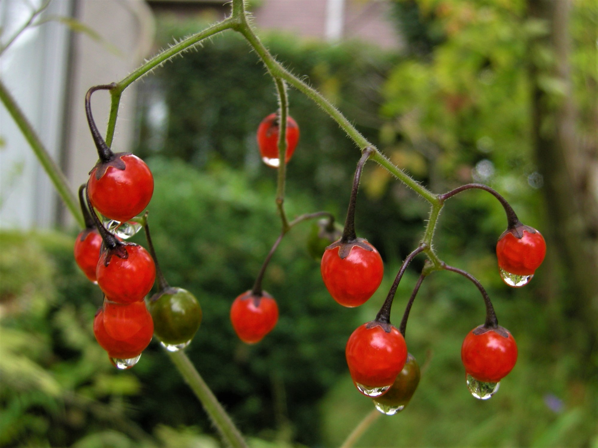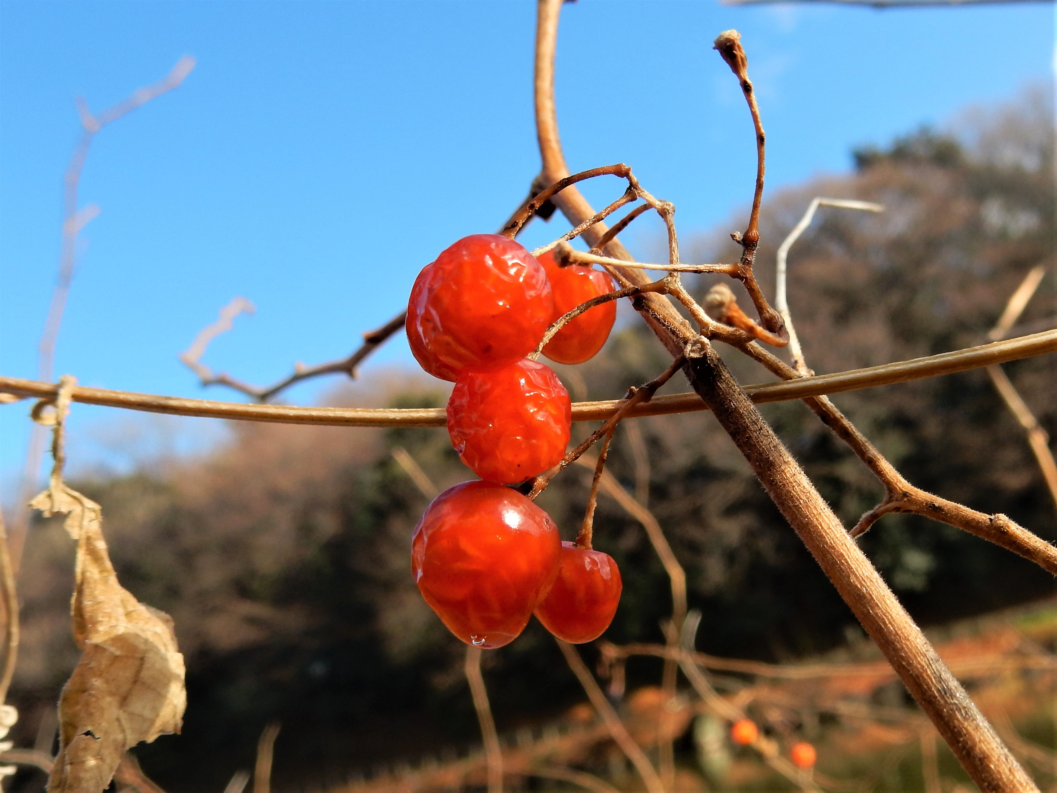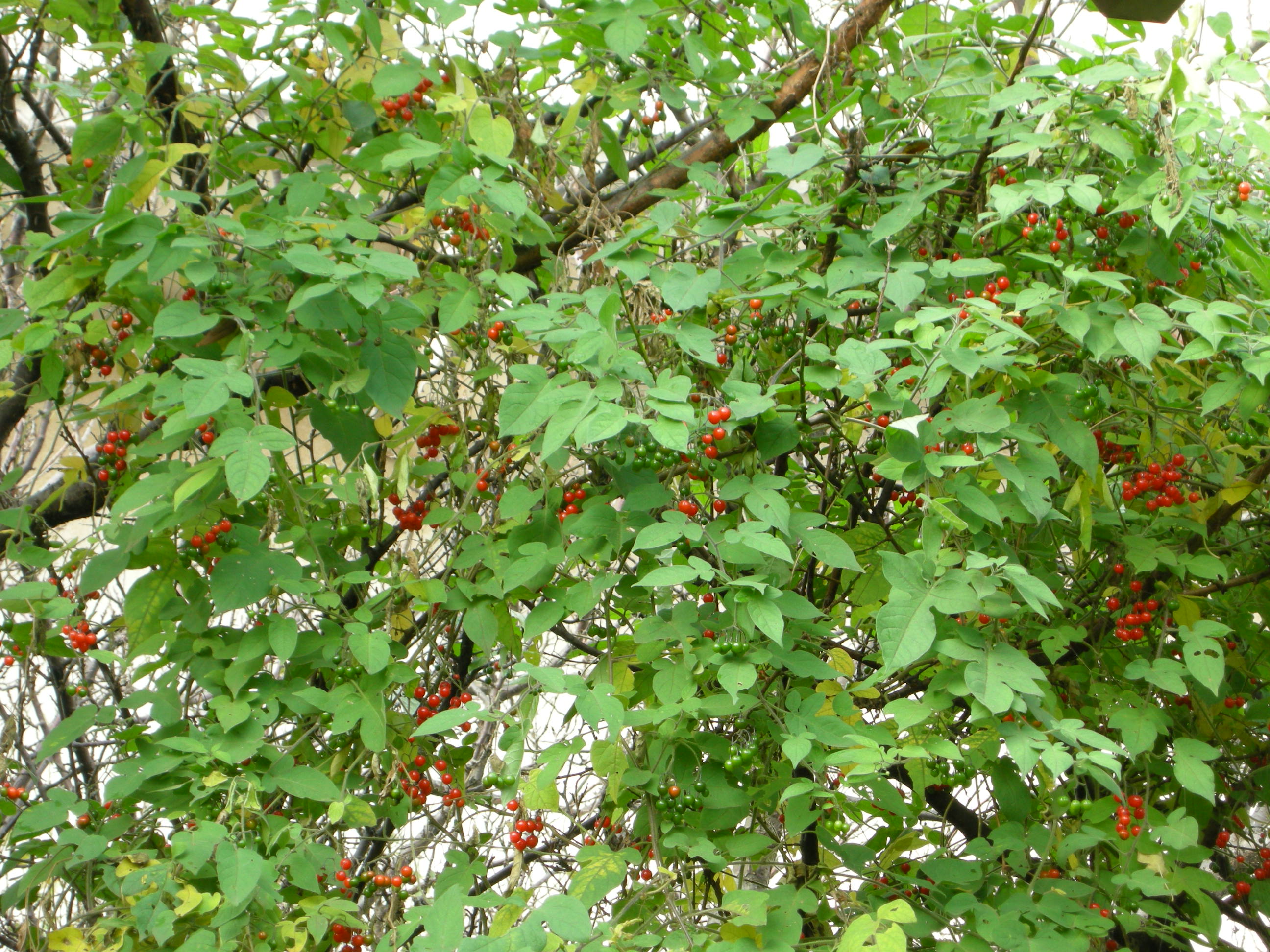 秋に赤く熟す果実をヒヨドリが好んで食べることから、ヒヨドリジョウゴ(鵯上戸)の名がついたと言われていますが、ヒヨドリだけに限らず、鳥が食べている姿はあまり確認されていませんが、鳥が種子散布に貢献していることは確かなようです。