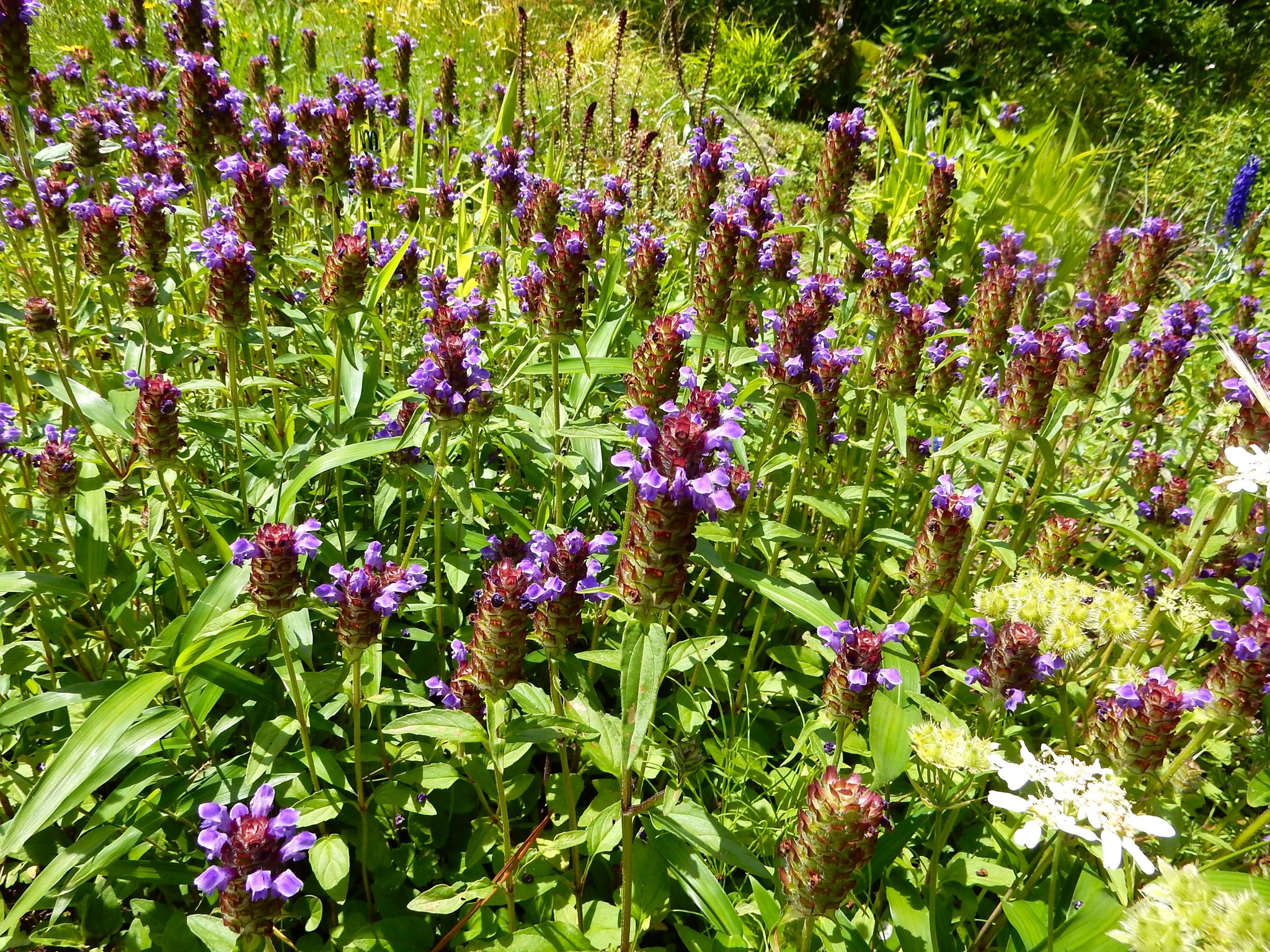 初夏から咲く花は、盛夏には花穂が枯れてしまうことからカゴソウ(夏枯草)と呼ばれます。