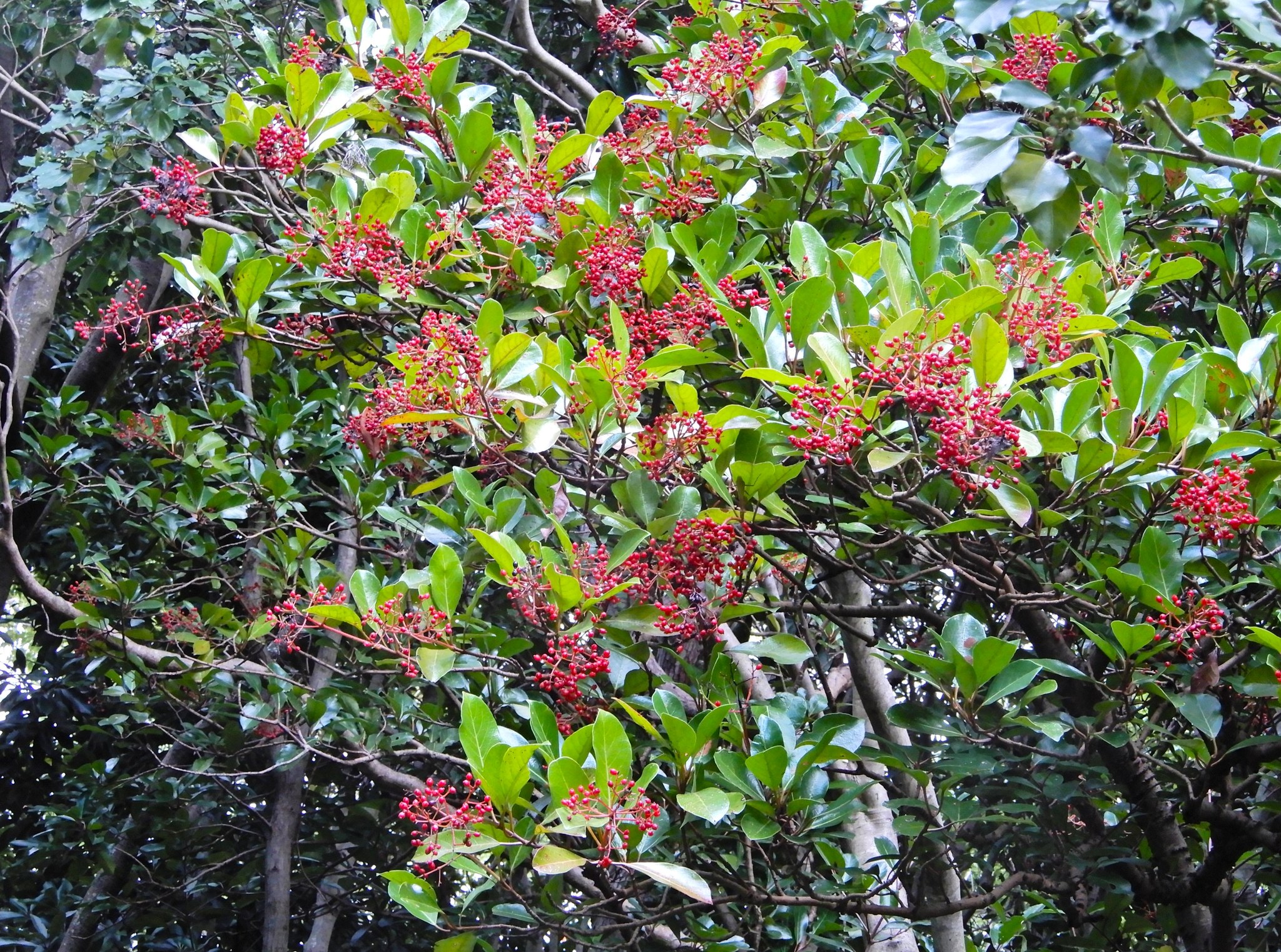 本来、暖かい地域の、海岸近くに自生する植物なのですが、剪定に強く育てやすいことから、公園樹、庭園樹、生垣などに植えられているのを多く見かけます。