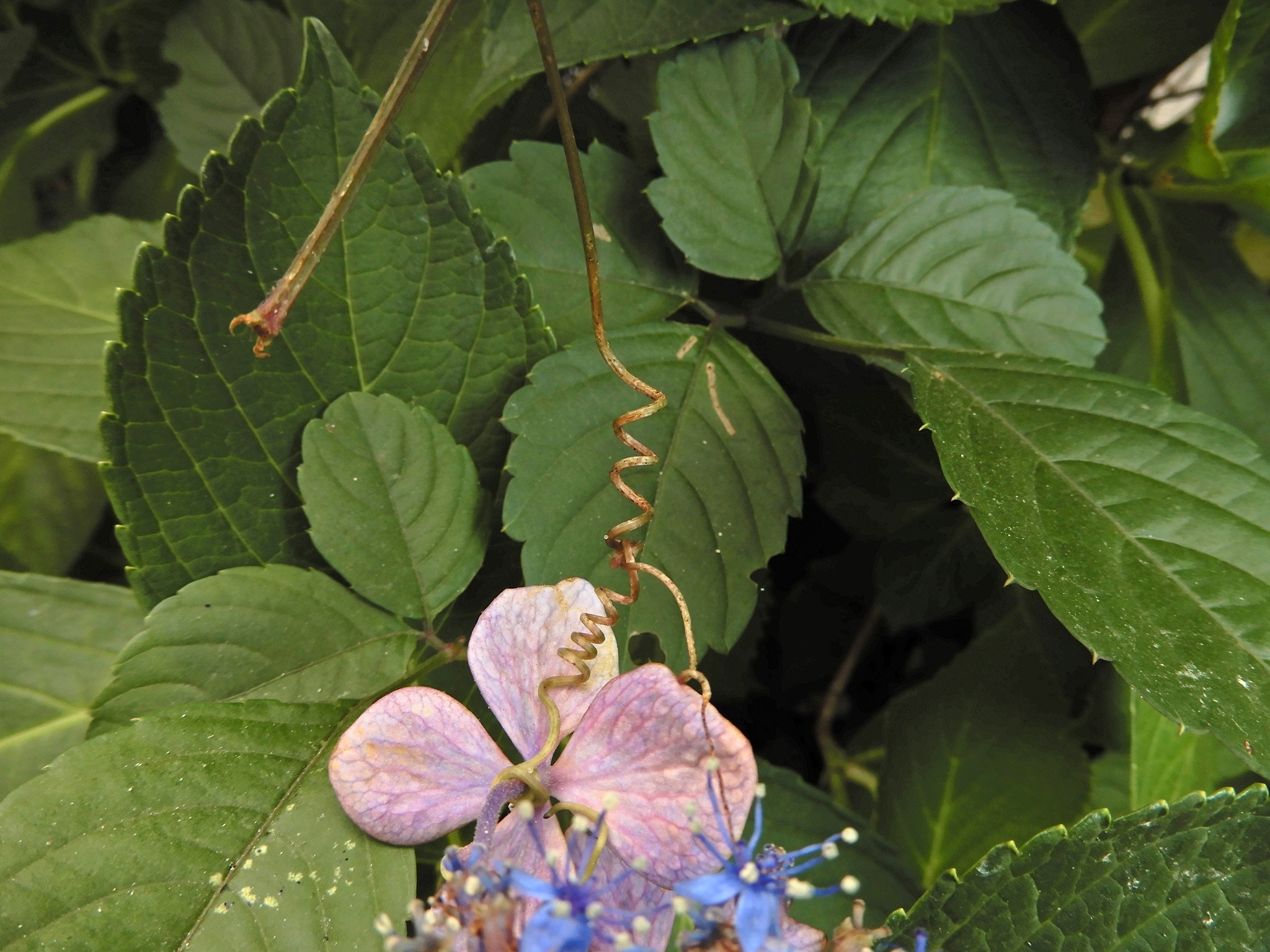 絡んだ先端と茎の方とから逆向きの螺旋になります。