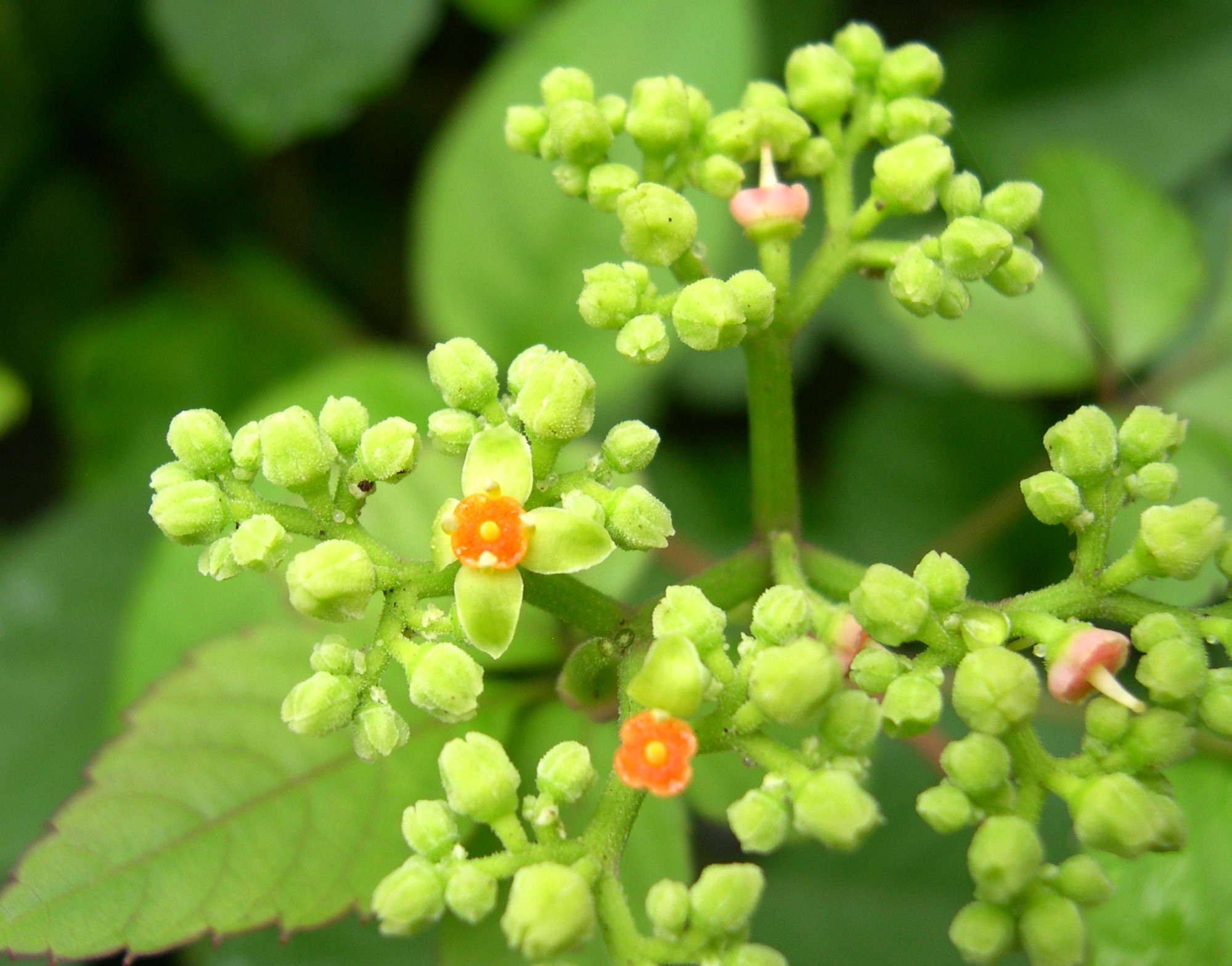 朝早く咲く花には緑色の花弁と雄しべが見られます。