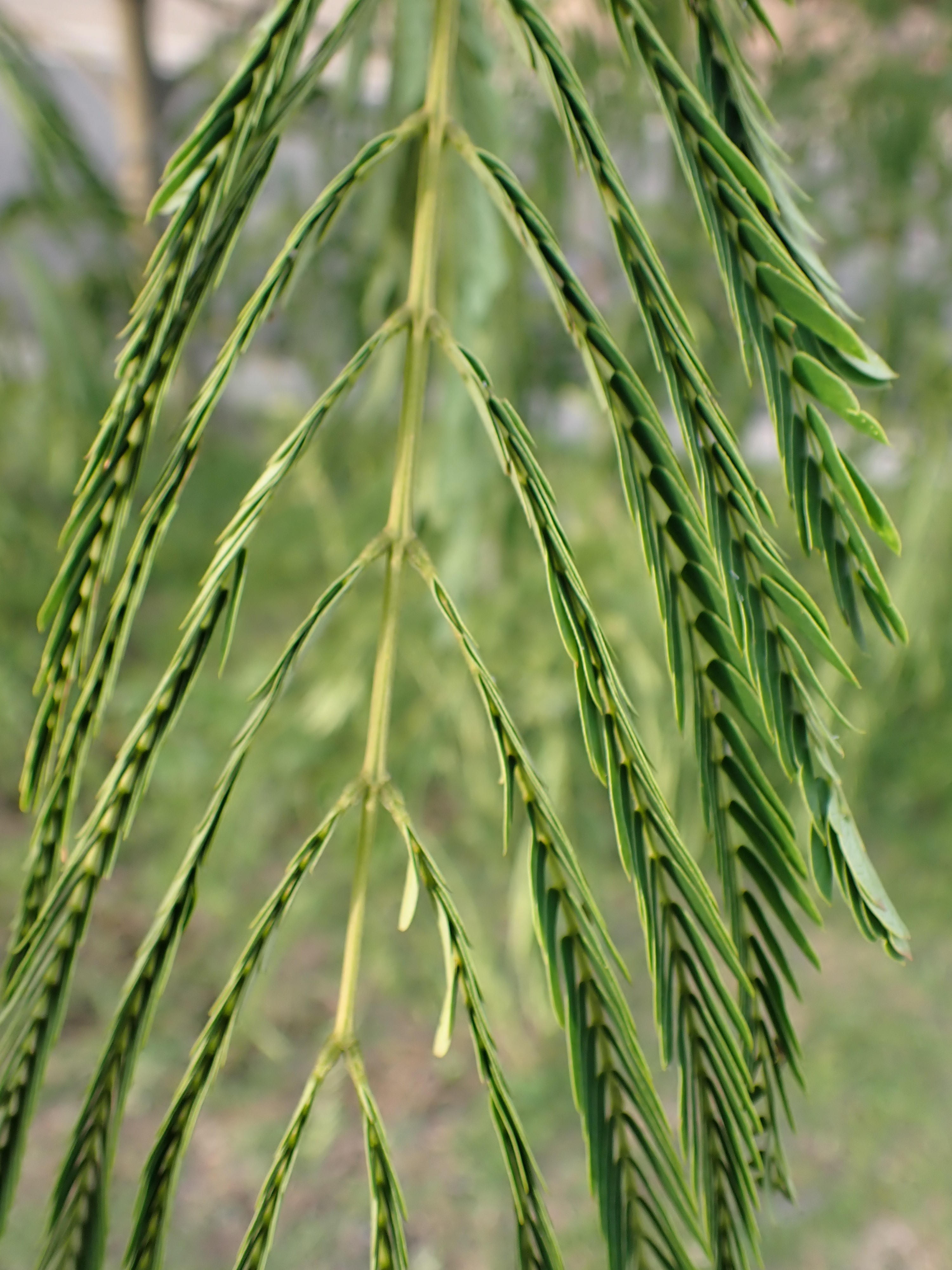 暗くなると葉を閉じる就眠運動が知られています。葉を閉じる理由の一つは乾燥を避けるためと言われています。昼でも気温が非常に高い時や、強烈な直射日光を受けるときには葉を閉じます。(オジギソウは触ると葉を閉じますが、ネムノキは触っても葉は閉じません。)