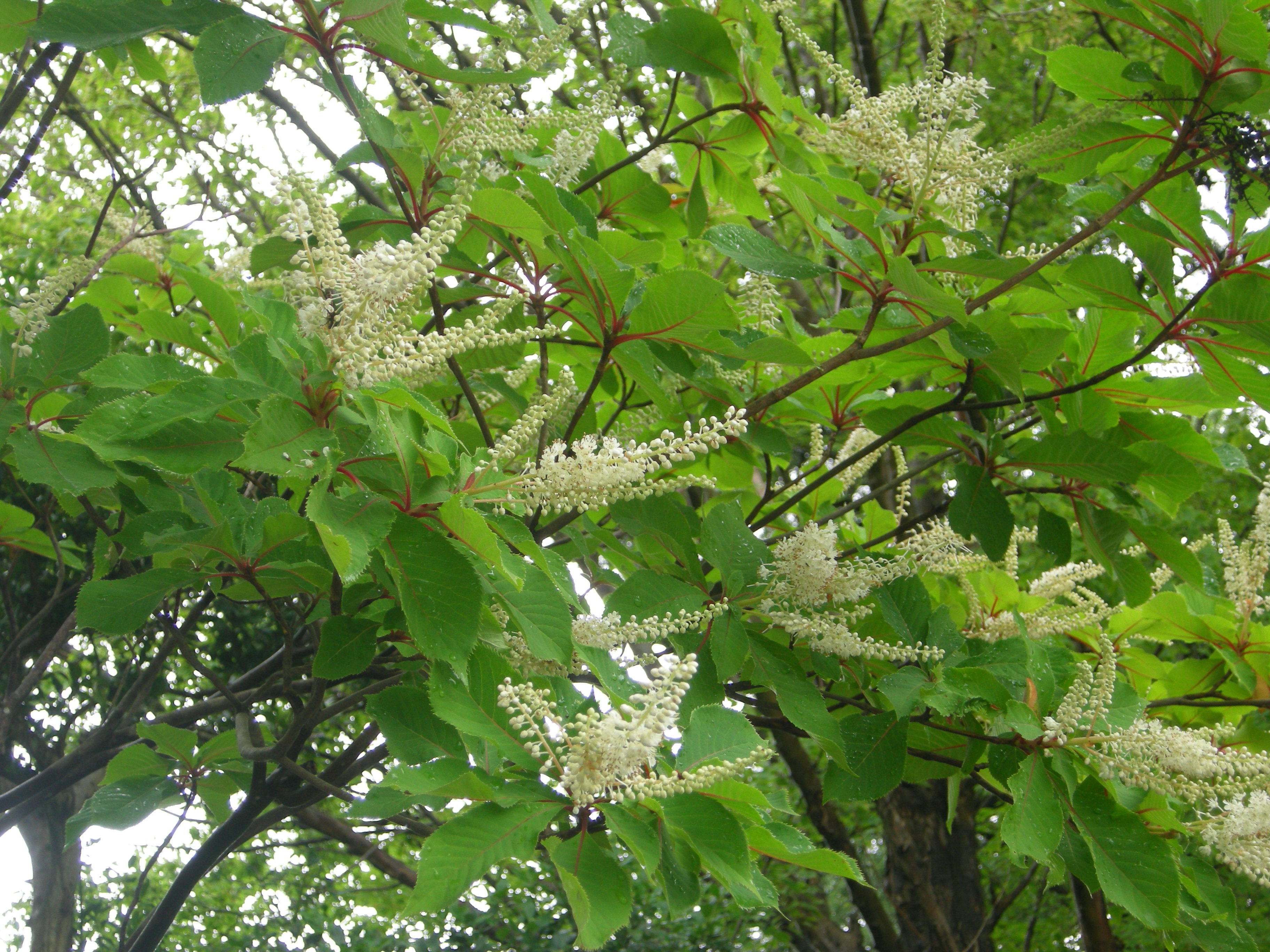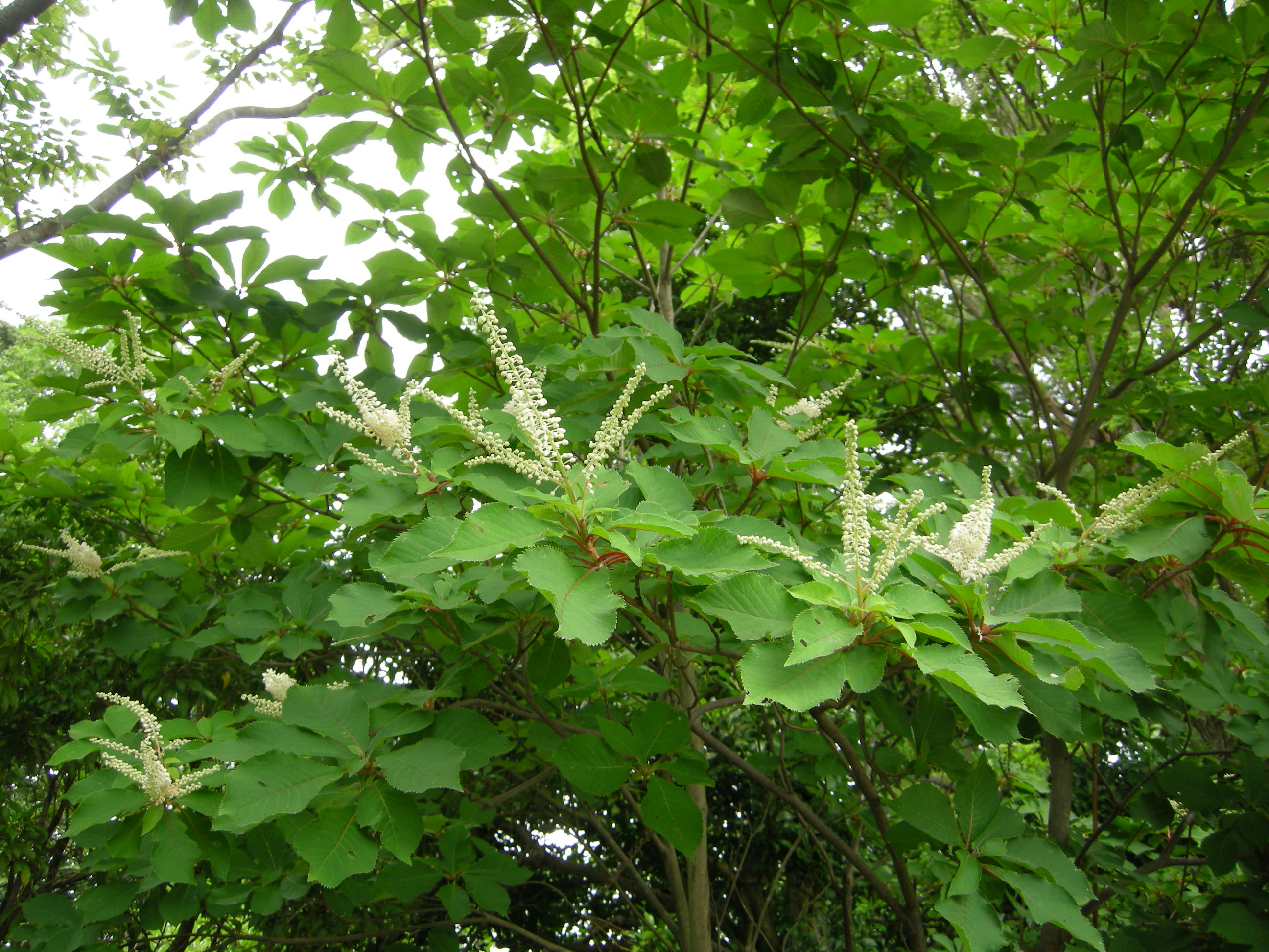 樹初夏に穂状の花を咲かせるリョウブは、別名ハタツモリ(畑積もり)と呼ばれる日本在来の植物です。木肌がつるつるしており、サルスベリ(猿滑り)と呼ぶ地方もあります。造園木として植えられているのを目にすることもあります。