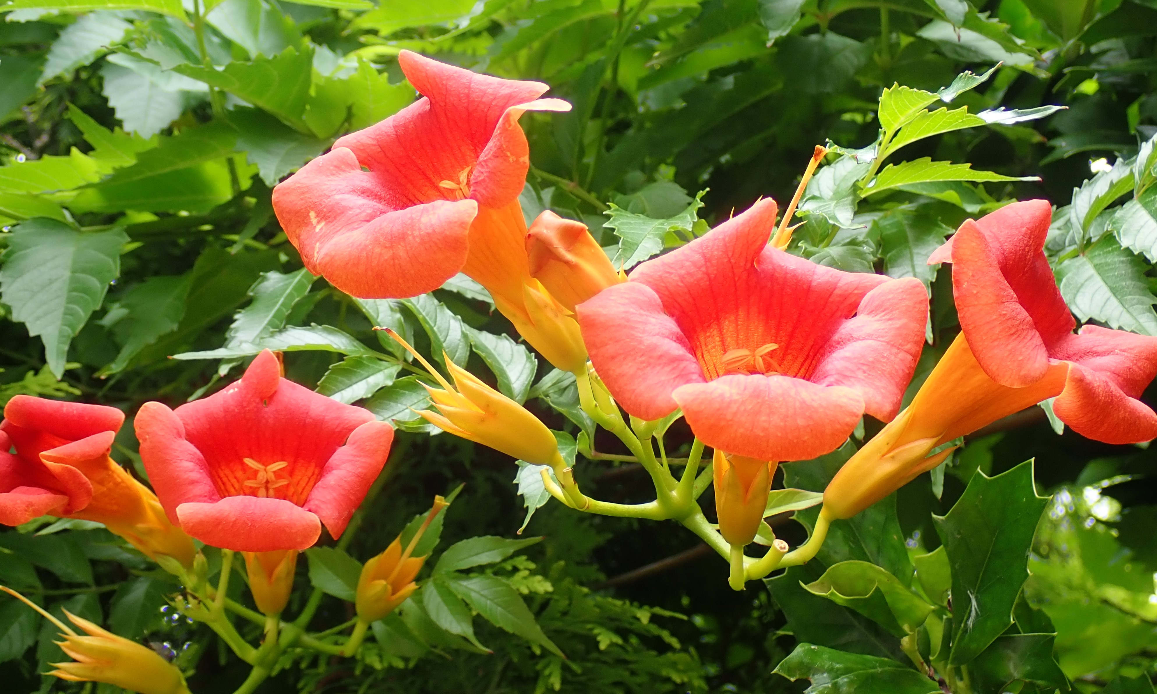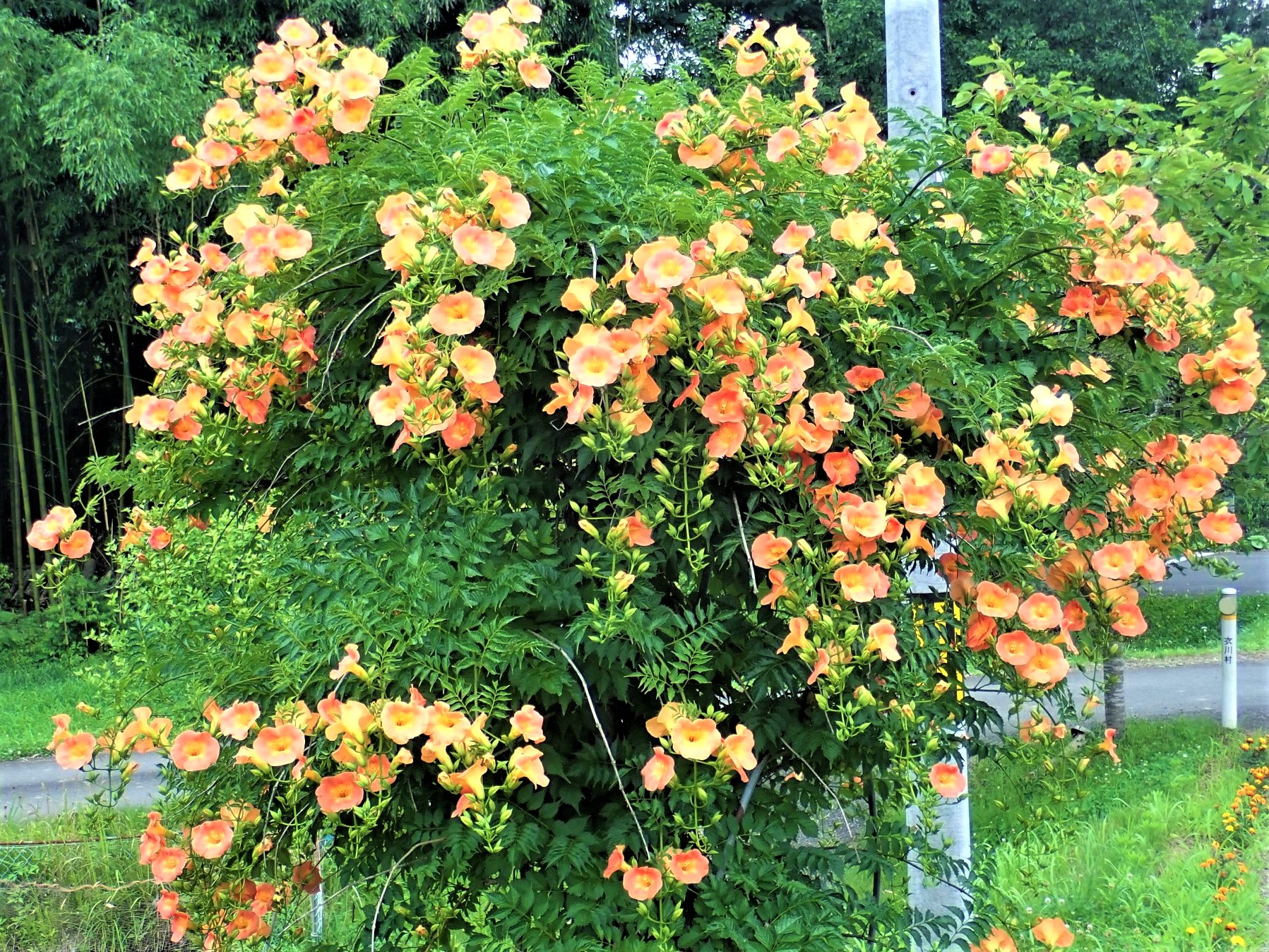 生命力が強く、近くにあるものに絡みながら上に登っていきます。近くの樹木や構造物に絡んで咲く姿が話題になったりします。根を張って思いがけないくらい離れた場所から芽を出すこともあり、ちょっと困った存在になってもいます。
