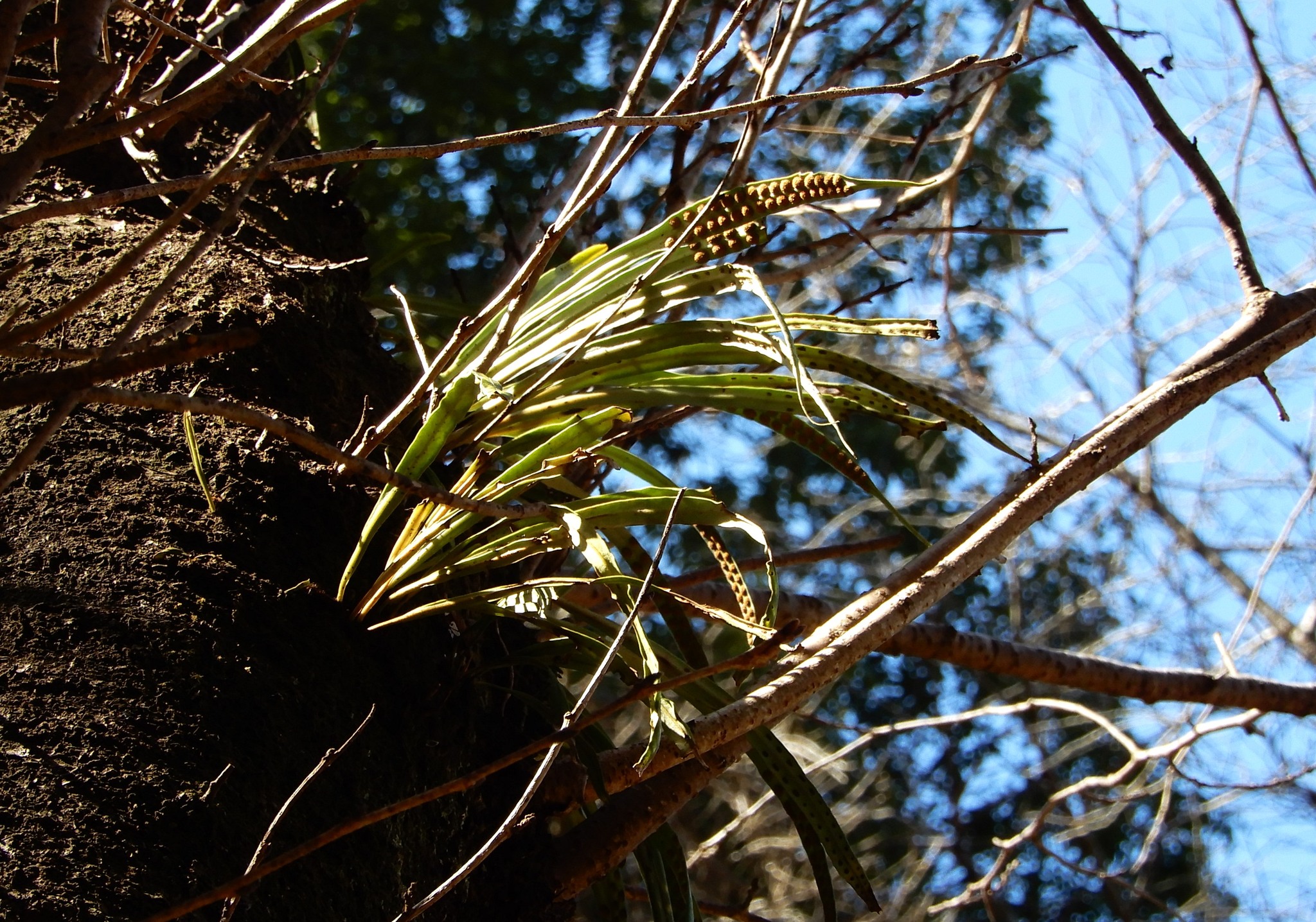 苔むした古木や、石垣、古くなったロープのようなものからも生えているのを見かけます。栄養や水を搾取するための寄生ではないので、適度な湿り気があり、やや薄暗い環境であれば、軒端に限らす生育することができるようです。