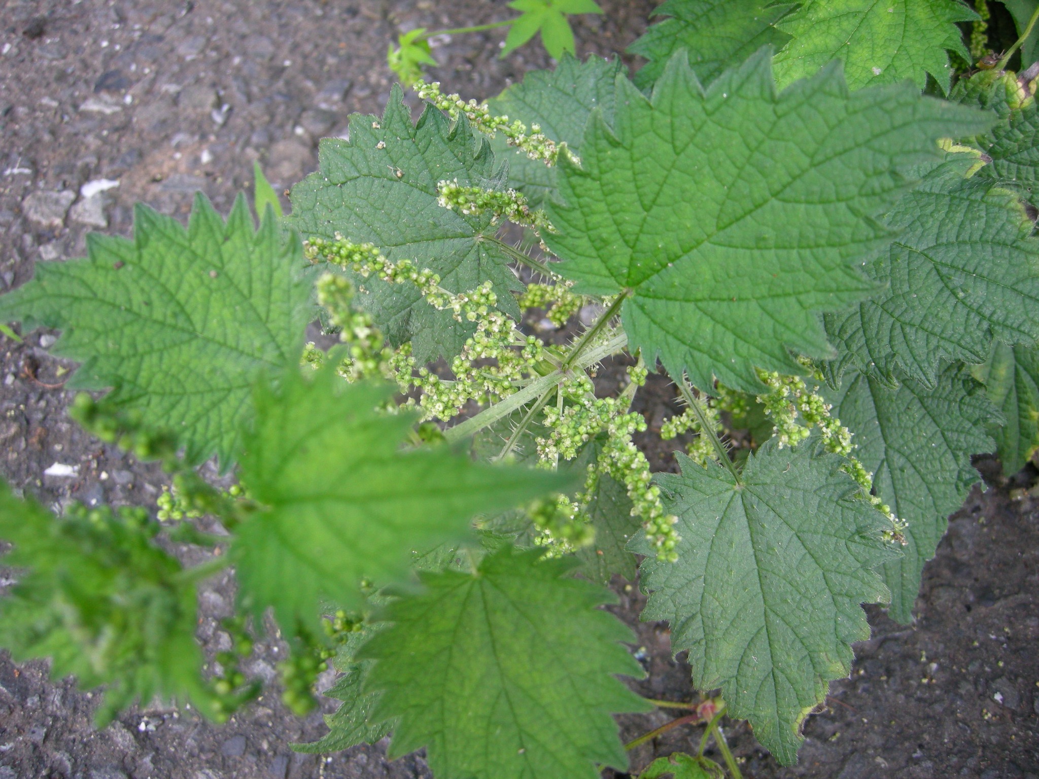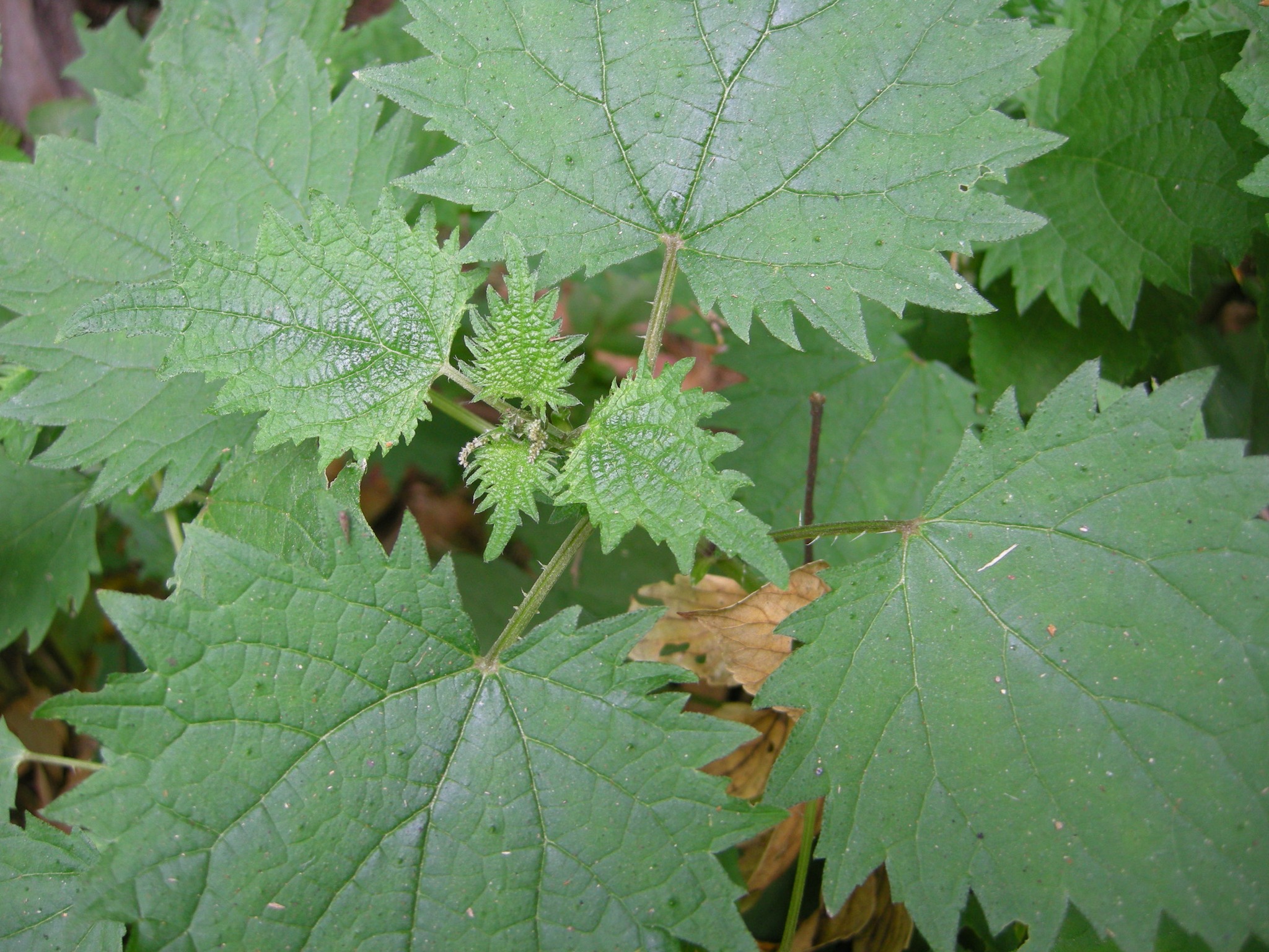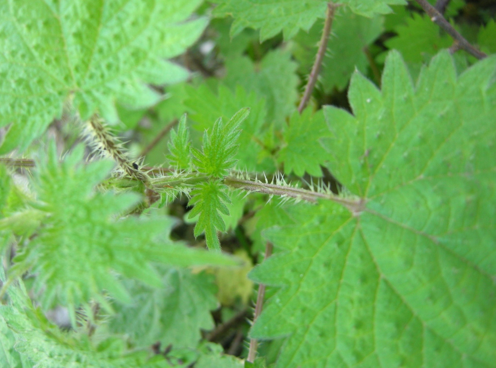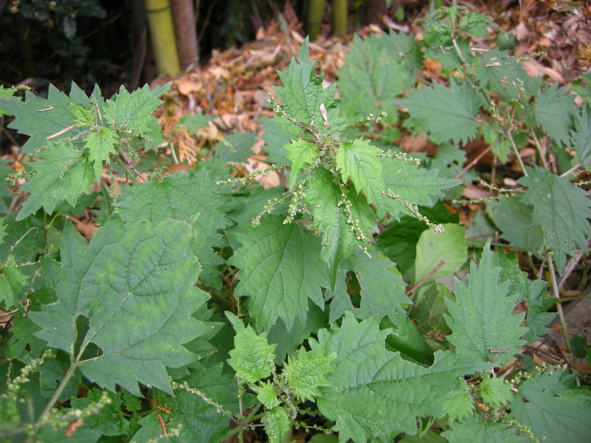 葉や茎に白い毛が生えています。毛というよりは刺というべきかもしれません。「刺毛(しもう)」と呼ばれます。この毛に刺されるとイライラする痛みが残るからイラクサとか、刺のことを古くは「刺(イラ)」と言ったとか、語源は諸説あります。