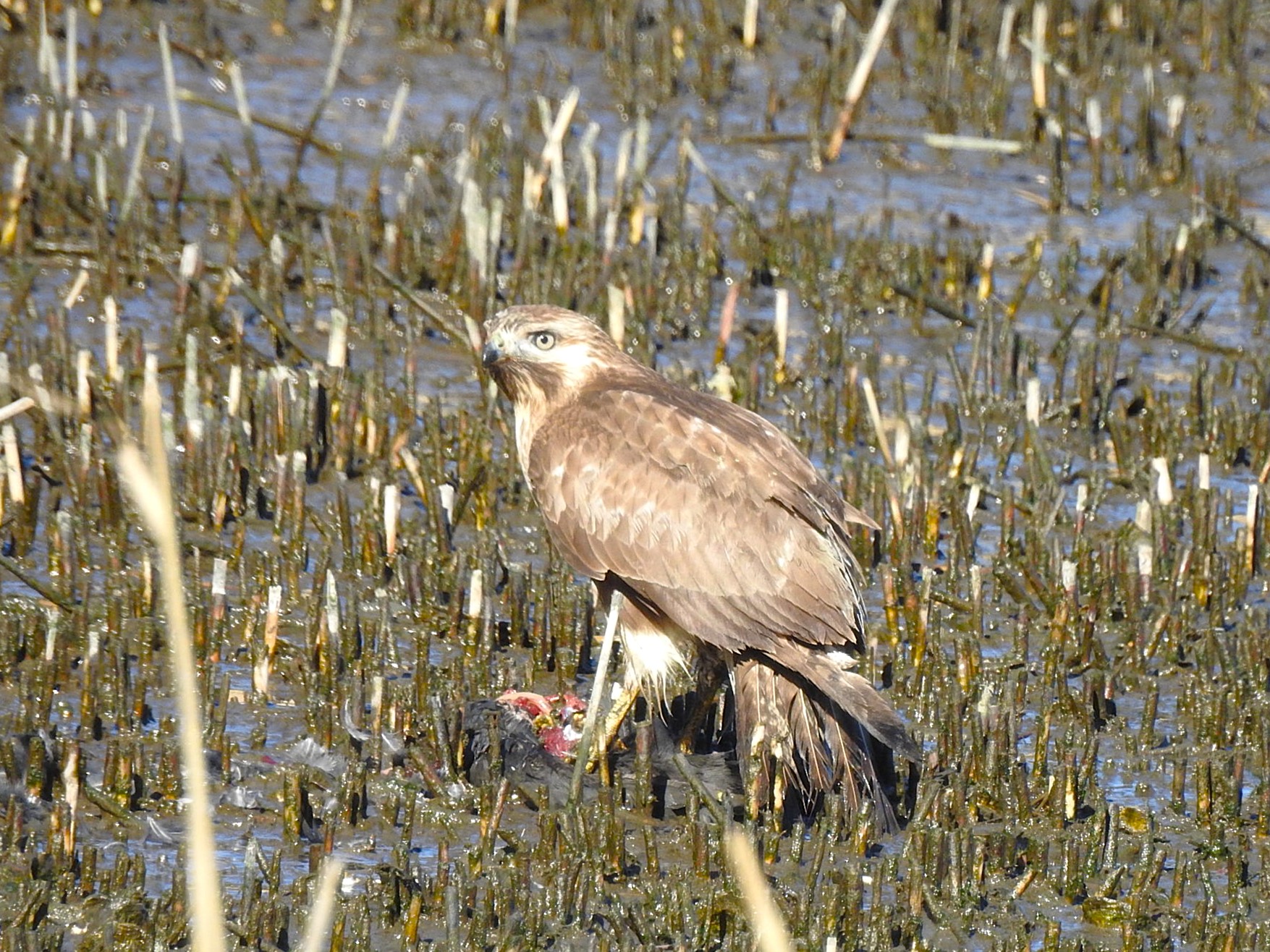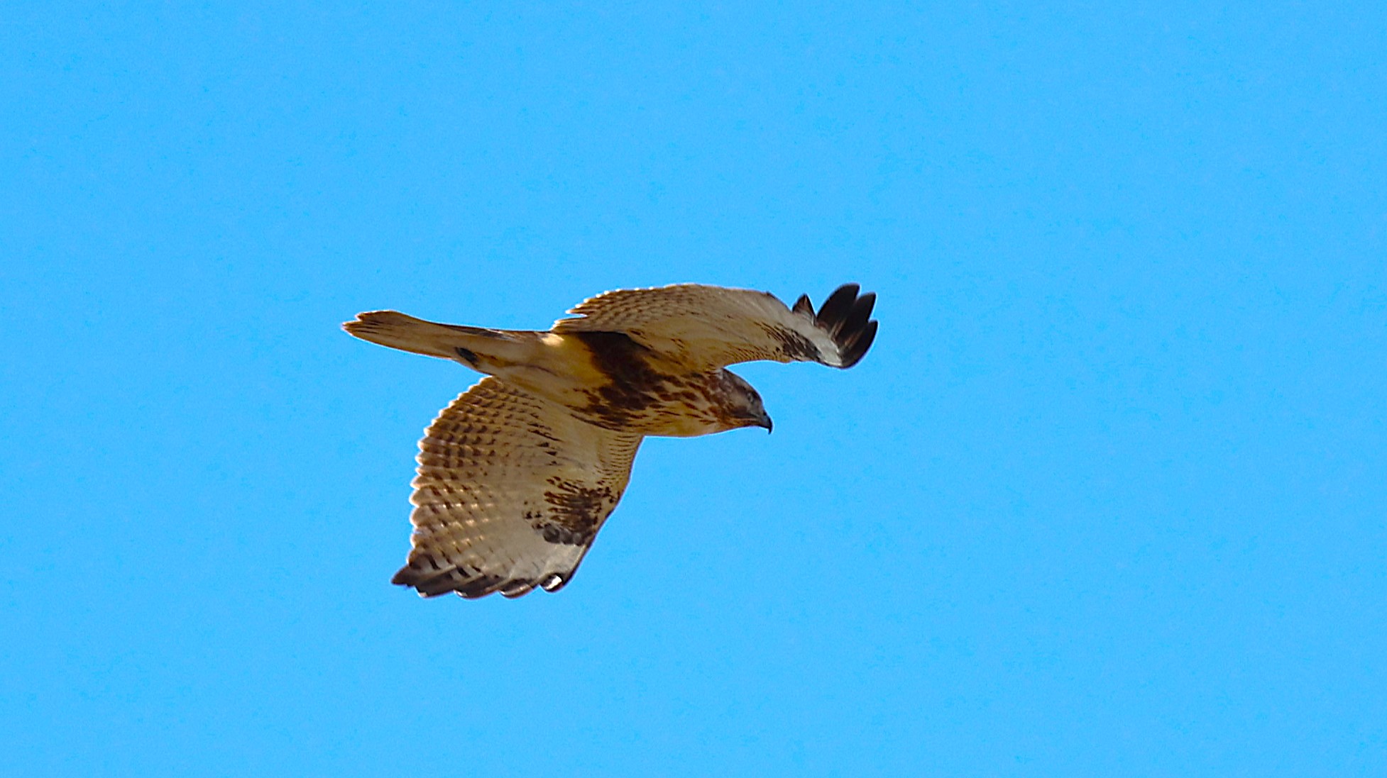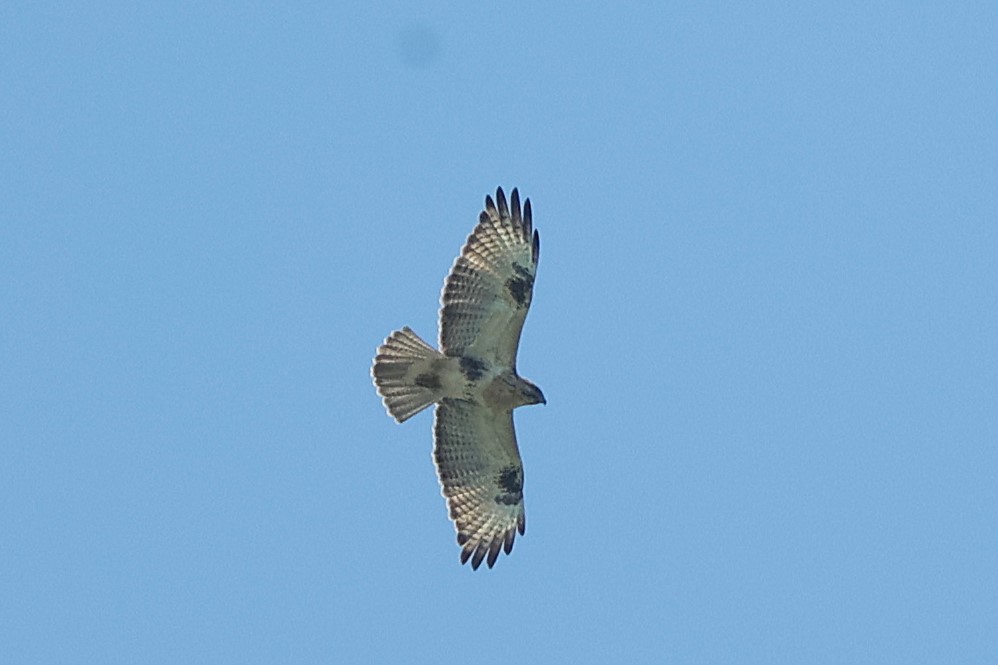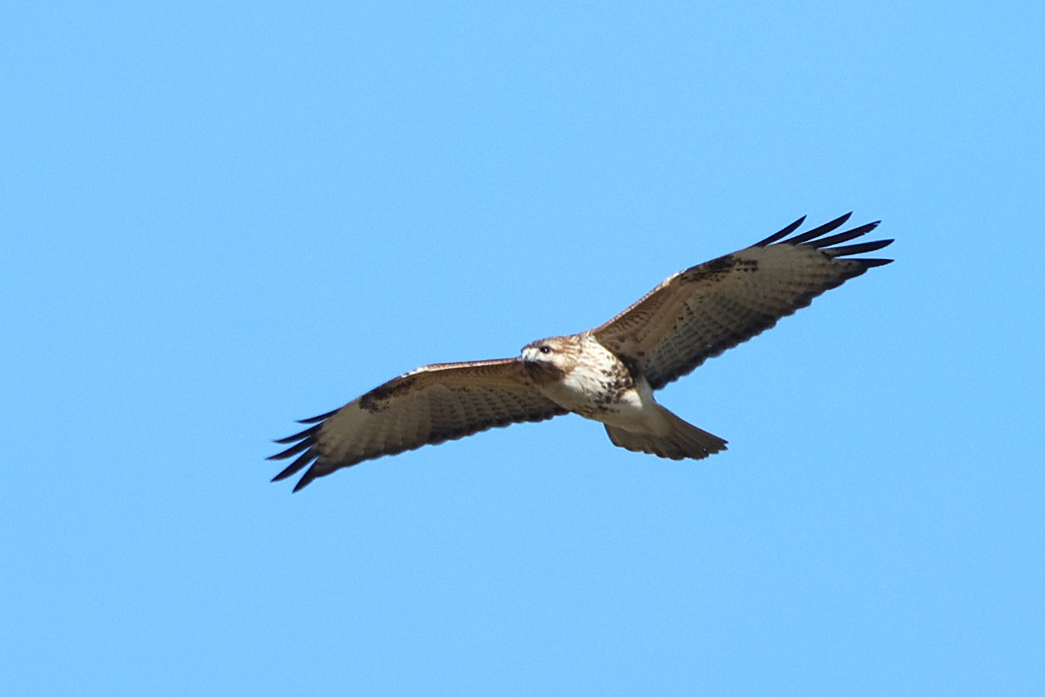 飛翔時には翼の裏の黒斑が目立ち、見分けるポイントになります。
